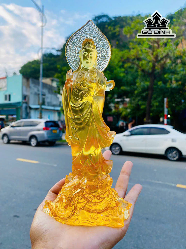 Tác Phẩm Quan Âm Tống Tử Đá Lưu Ly Cao 21 Ngang 10 (cm) 760g