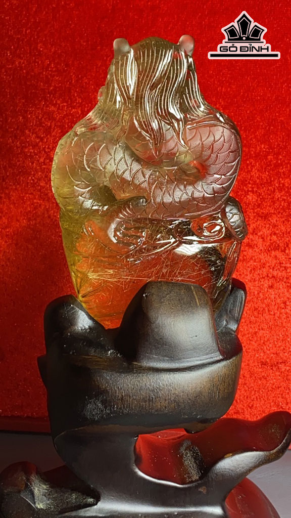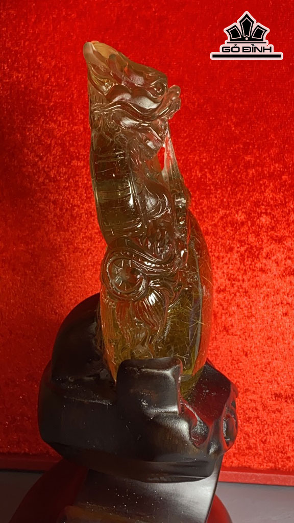 Tác Phẩm Rồng Đá Thạch Anh Tóc Vàng Cao 131 Ngang 67 Sâu 37 (mm) 391,3g