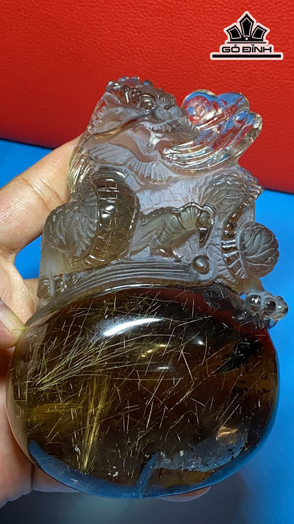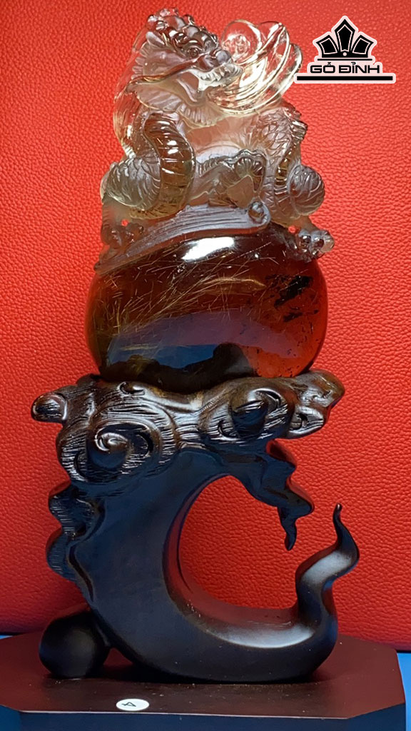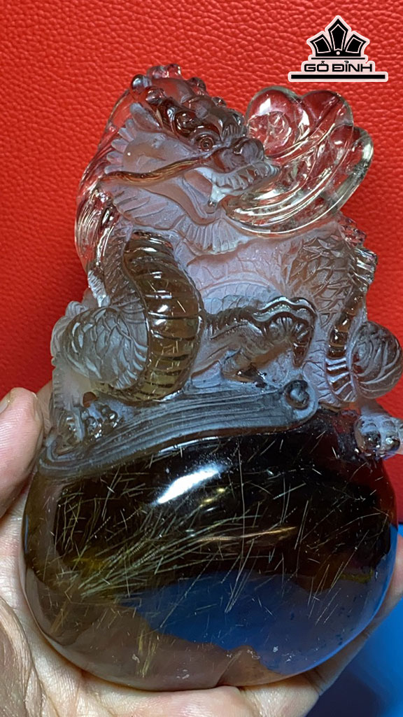 Tác Phẩm Rồng Đá Thạch Anh Tóc Vàng Cao 236 Ngang 83 Sâu 40 (mm) 488g