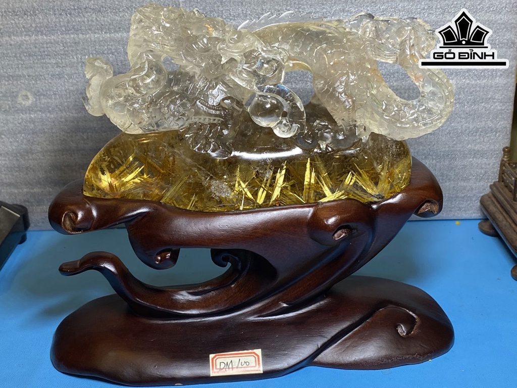 Tác Phẩm Rồng Hoa Thị Đá Thạch Anh Tóc Vàng Cao 175 Ngang 101 Sâu 57 (mm) 968g