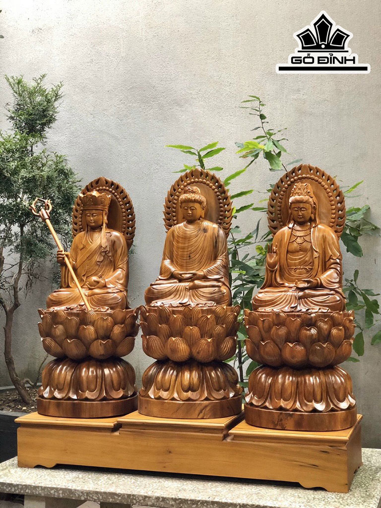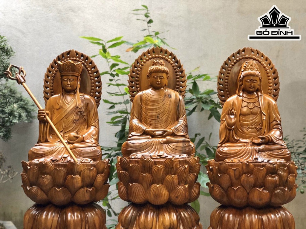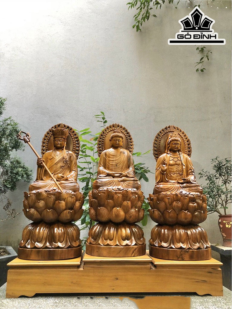 Tác Phẩm Sa Bà Tam Thánh Gỗ Bách Xanh Cao 80 Ngang 33 Sâu 25 (cm)