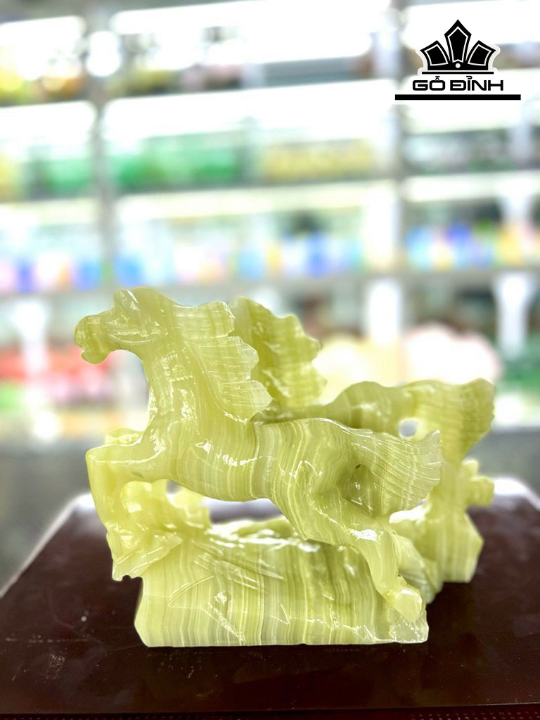 Tác Phẩm Song Mã Đá Onyx Cao 18 Ngang 21 (cm) 2,6kg