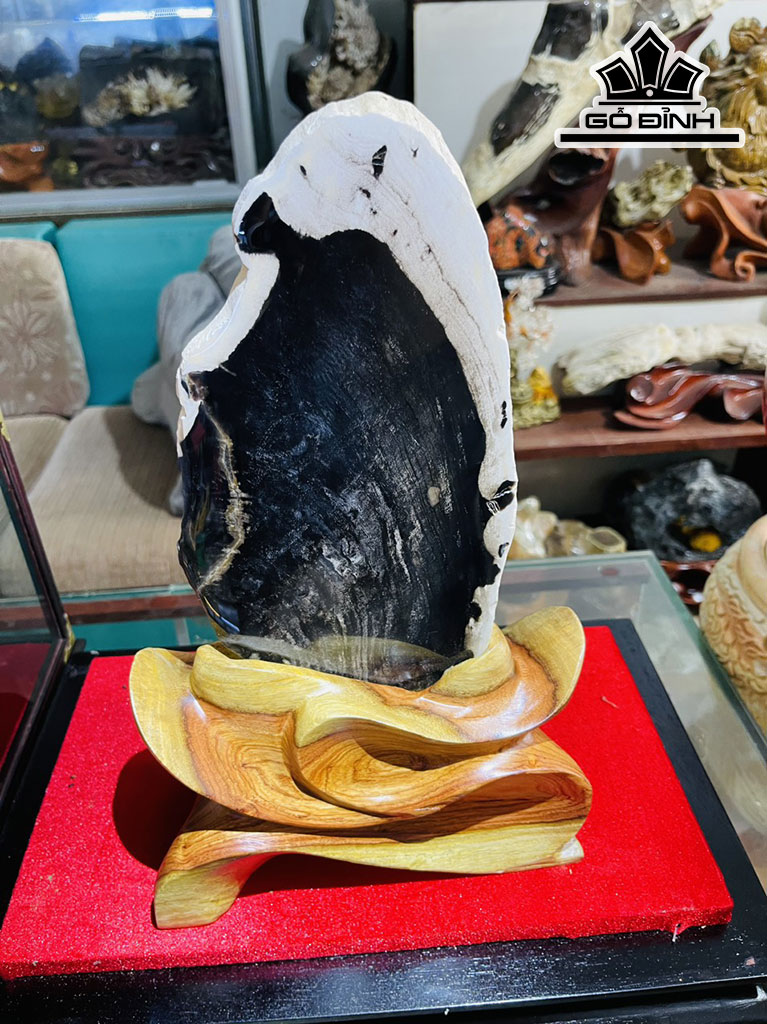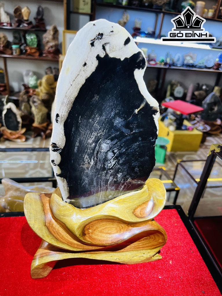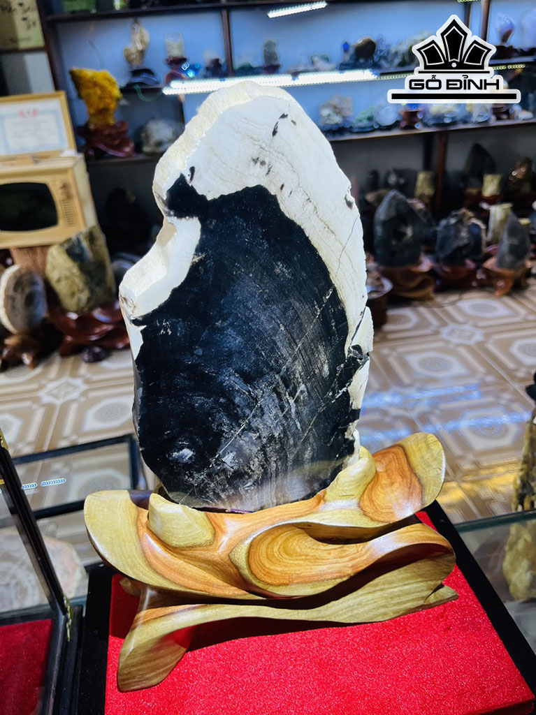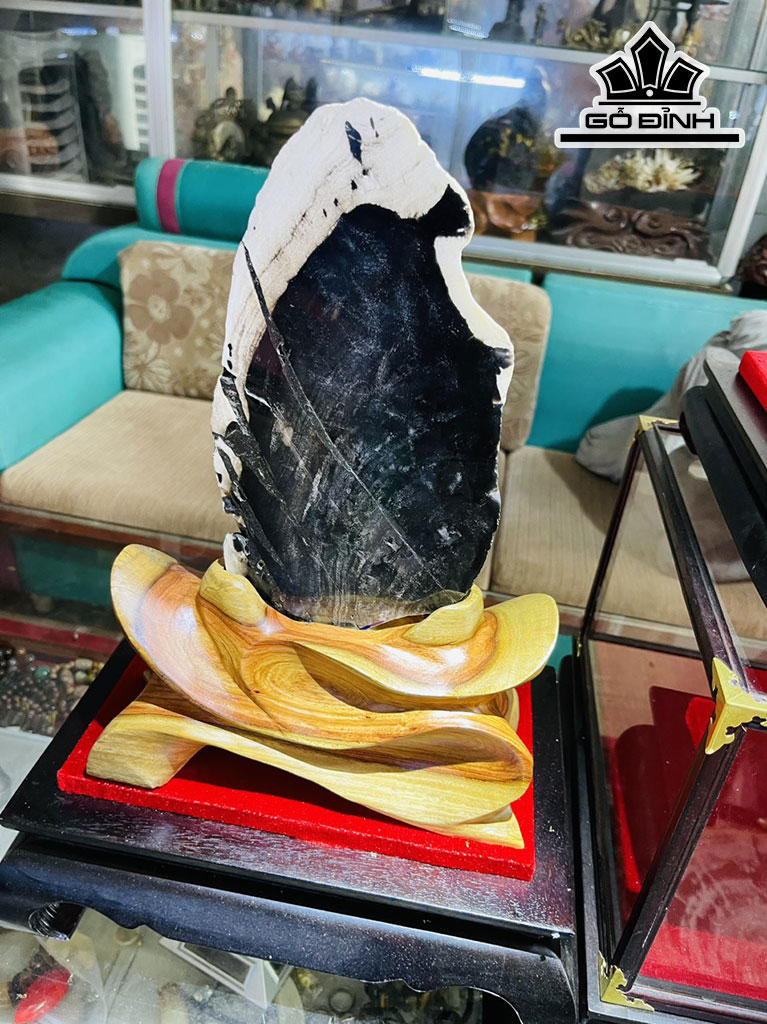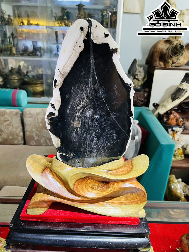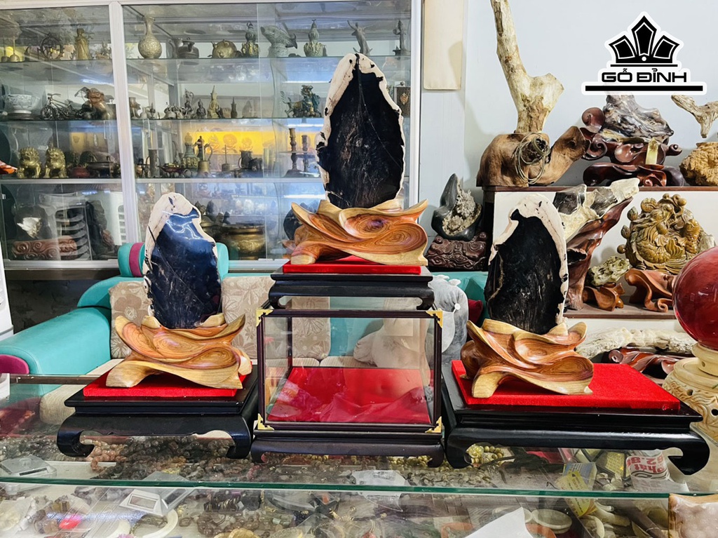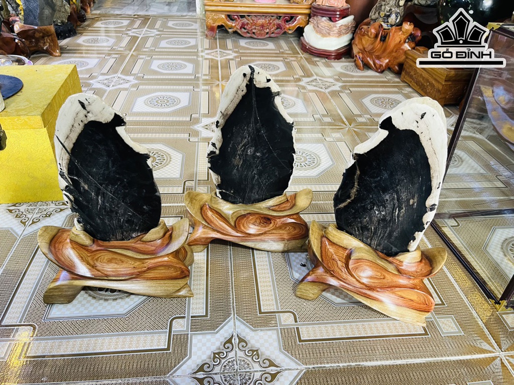 Tác Phẩm Tam Phúc Gỗ Mun Đen Hóa Ngọc Cao 35-36 (cm) 6,4kg