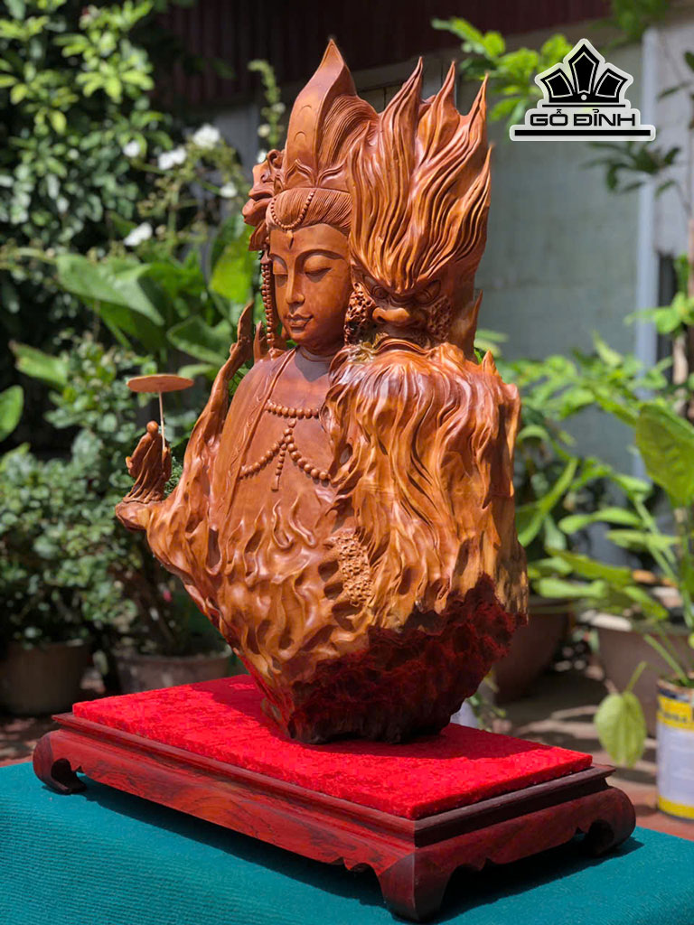 Tác Phẩm Thiện Ác Gỗ Dổi Cao 75 Ngang 55 Sâu 25 (cm) - Cả Kỷ Cao 86 (cm)