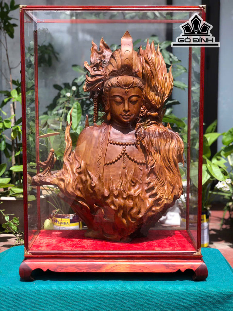 Tác Phẩm Thiện Ác Gỗ Dổi Cao 75 Ngang 55 Sâu 25 (cm) - Cả Kỷ Cao 86 (cm)