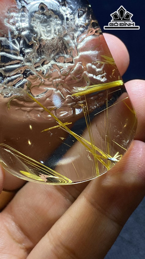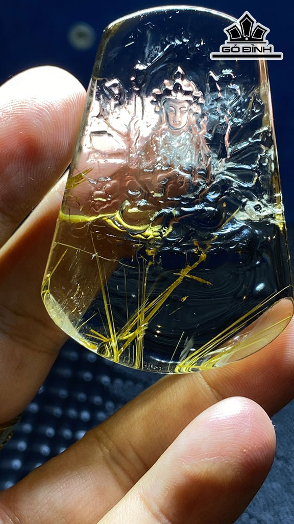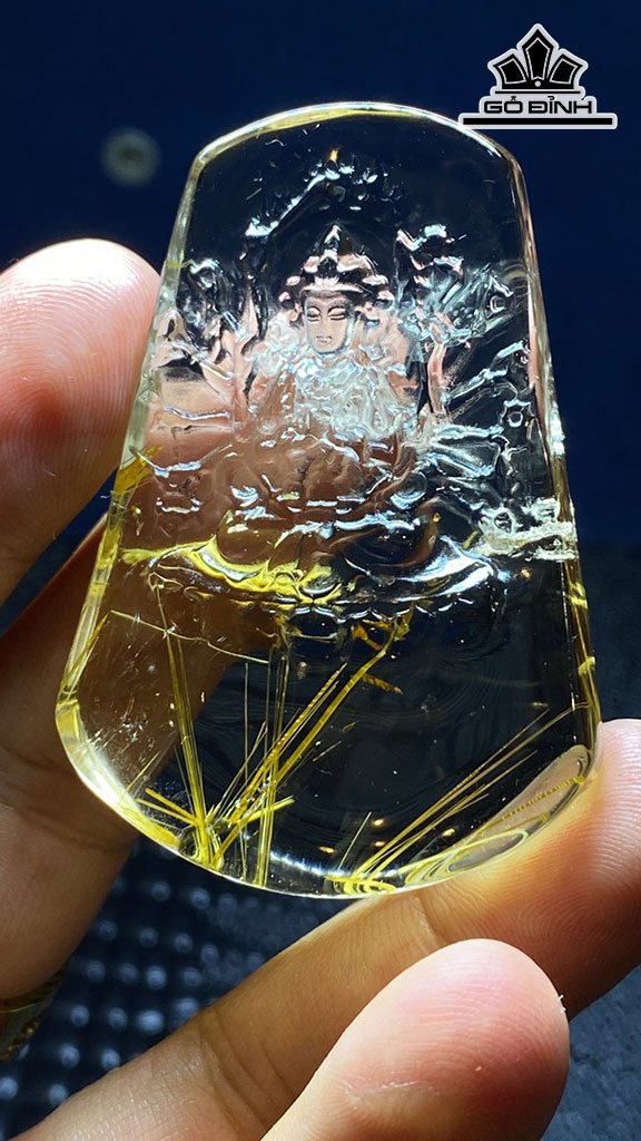 Tác Phẩm Thiên Thủ Thiên Nhãn Đá Thạch Anh Tóc Vàng Cao 59 Ngang 42 Sâu 12 (mm) 47,8g
