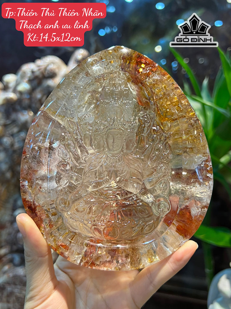 Tác Phẩm Thiên Thủ Thiên Nhãn Đá Thạch Anh Ưu Linh Cao 14,5 Ngang 12 (cm)