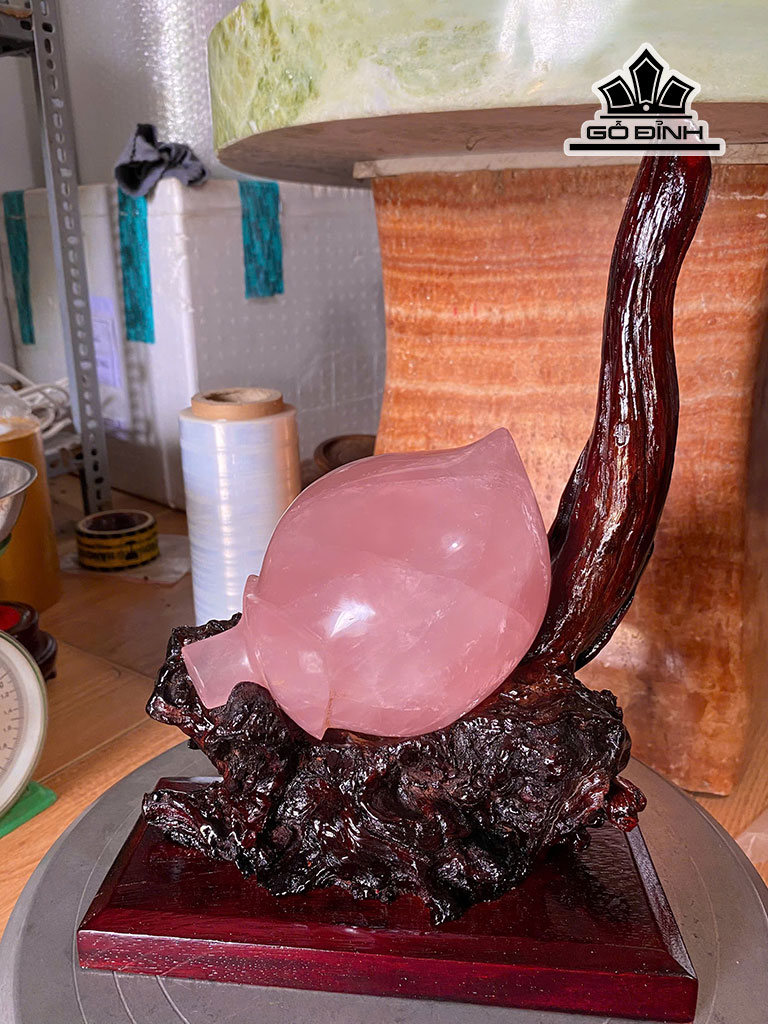 Tác Phẩm Trái Đào Tiên Ngàn Năm Tuổi Đá Thạch Anh Hồng Cao 30 Ngang 21 Sâu 11 (cm) 1,5kg