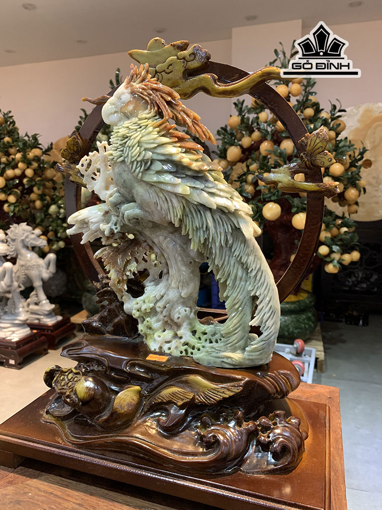 Tác Phẩm Vẹt Phú Quý Tài Lộc Đá Serpentine Cao 42 Ngang 19 Riêng Đá Cao 31 Ngang 36 (cm)