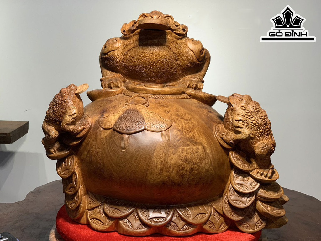 Tam Cóc Trấn Chum Tiền Gỗ Nu Hương Cao 35 Ngang 40 Sâu 30 (cm)