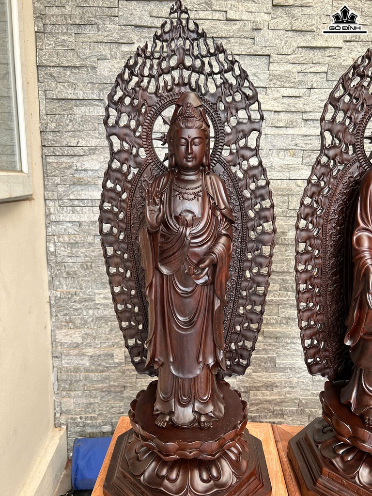 Tây Phương Tam Thánh Gỗ Muồng Đen - Thân Tượng Cao 70 Ngang 30x30 - Cả Hào Quang Cao 81 (cm)