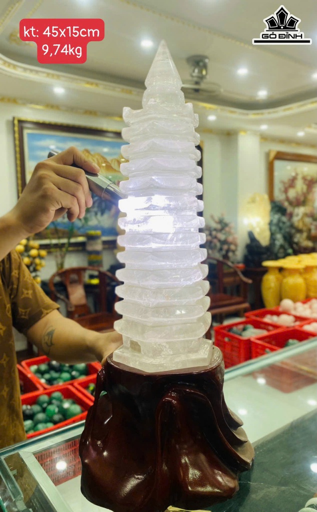Tháp Văn Xương Đá Thạch Anh Trắng Cao 45 Ngang 15 (cm) 9,74kg