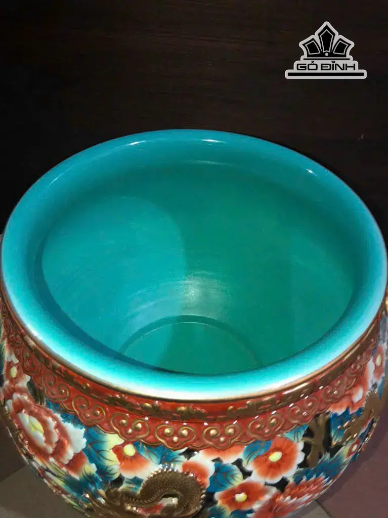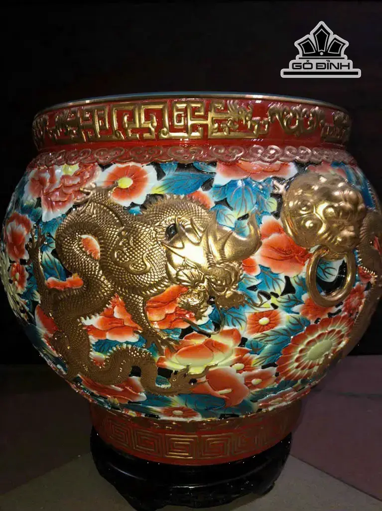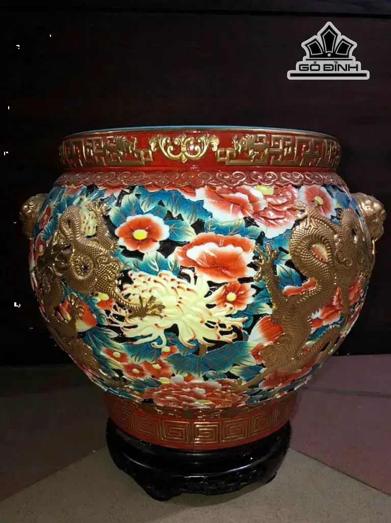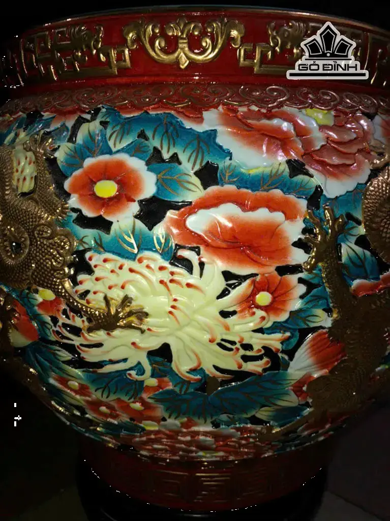 Thống Tàu Khắc Nổi Tích Ngũ Long Gốm Tàu Cao 31 Đường Kính Miệng 30 (cm)