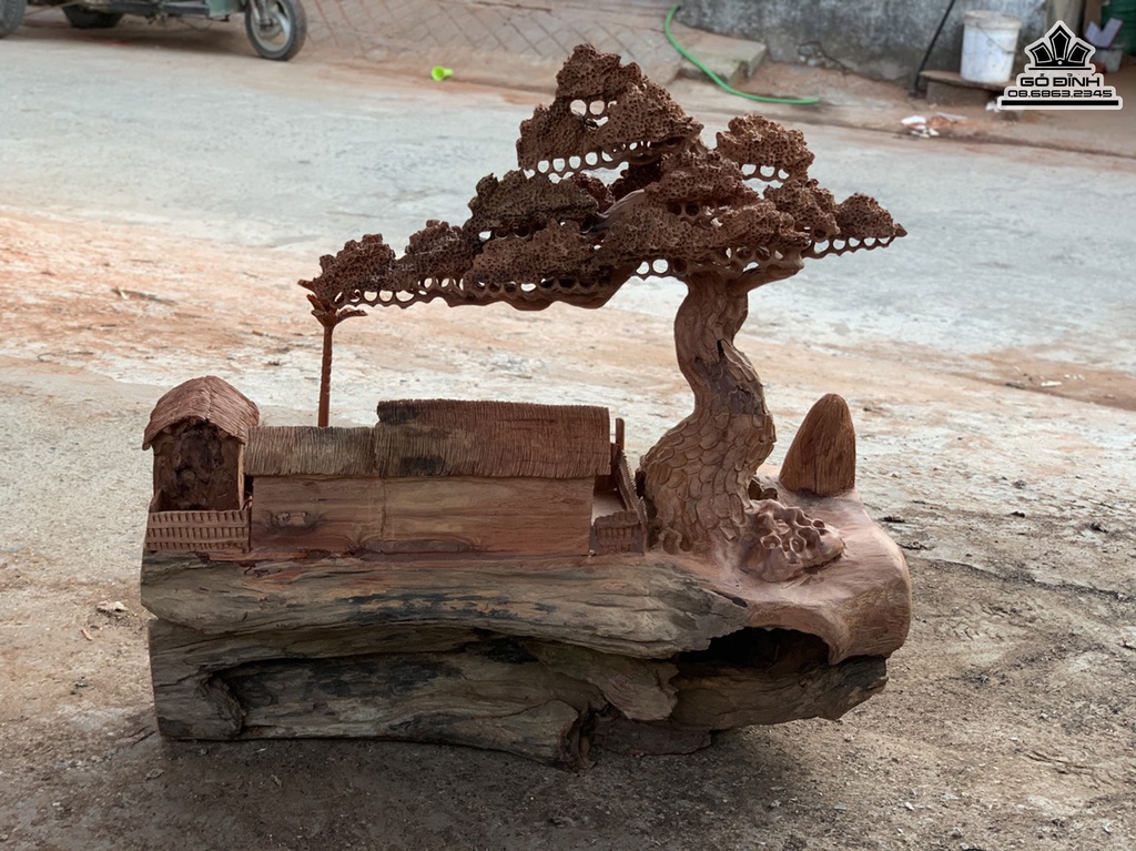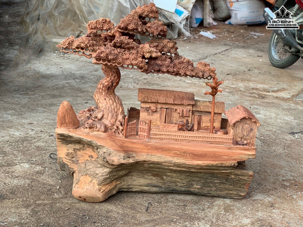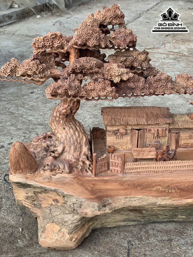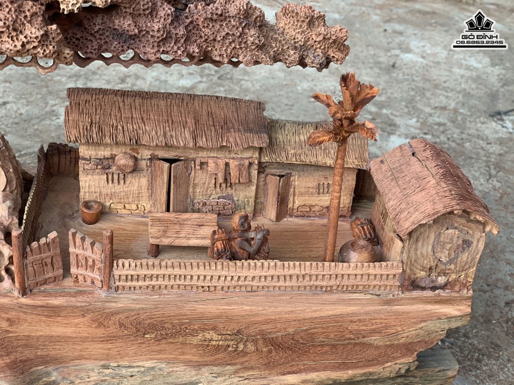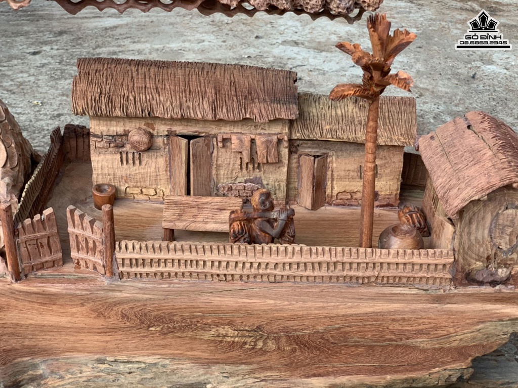 Tiểu Cảnh Đồng Quê Gỗ Hương Việt Cao 64 Ngang 65 Sâu 35 (cm)