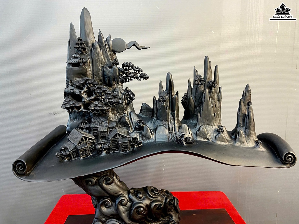 Tiểu Cảnh Làng Quê Gỗ Mun Sừng Cao 66 Ngang 61 Sâu 23 (cm)