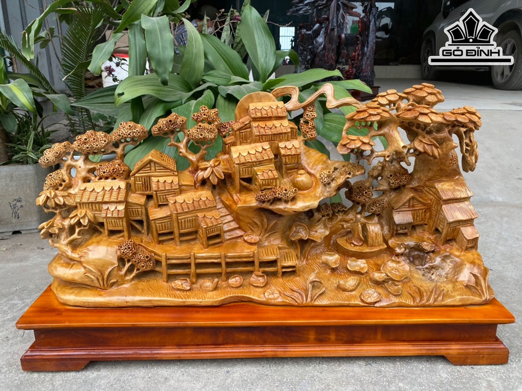 Tiểu Cảnh Làng Quê Gỗ Xá Xị Cao 48 Ngang 85 Sâu 23 (cm)