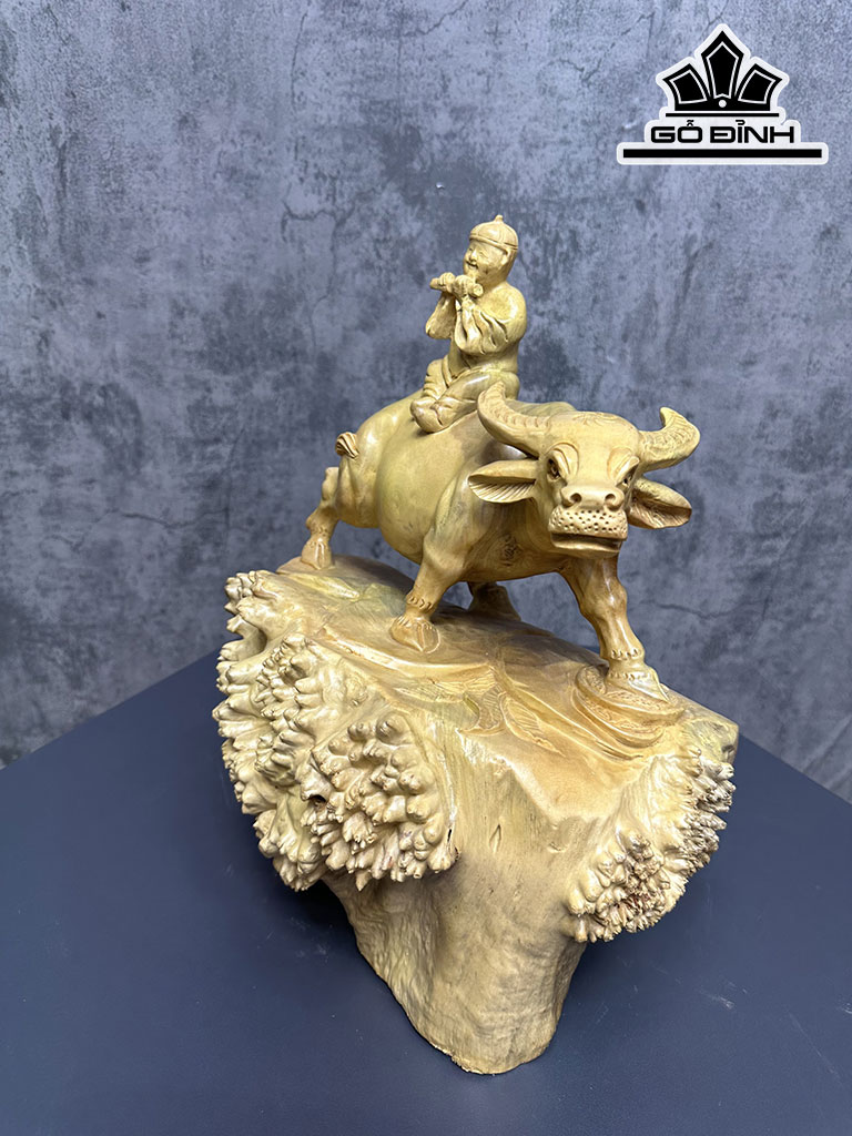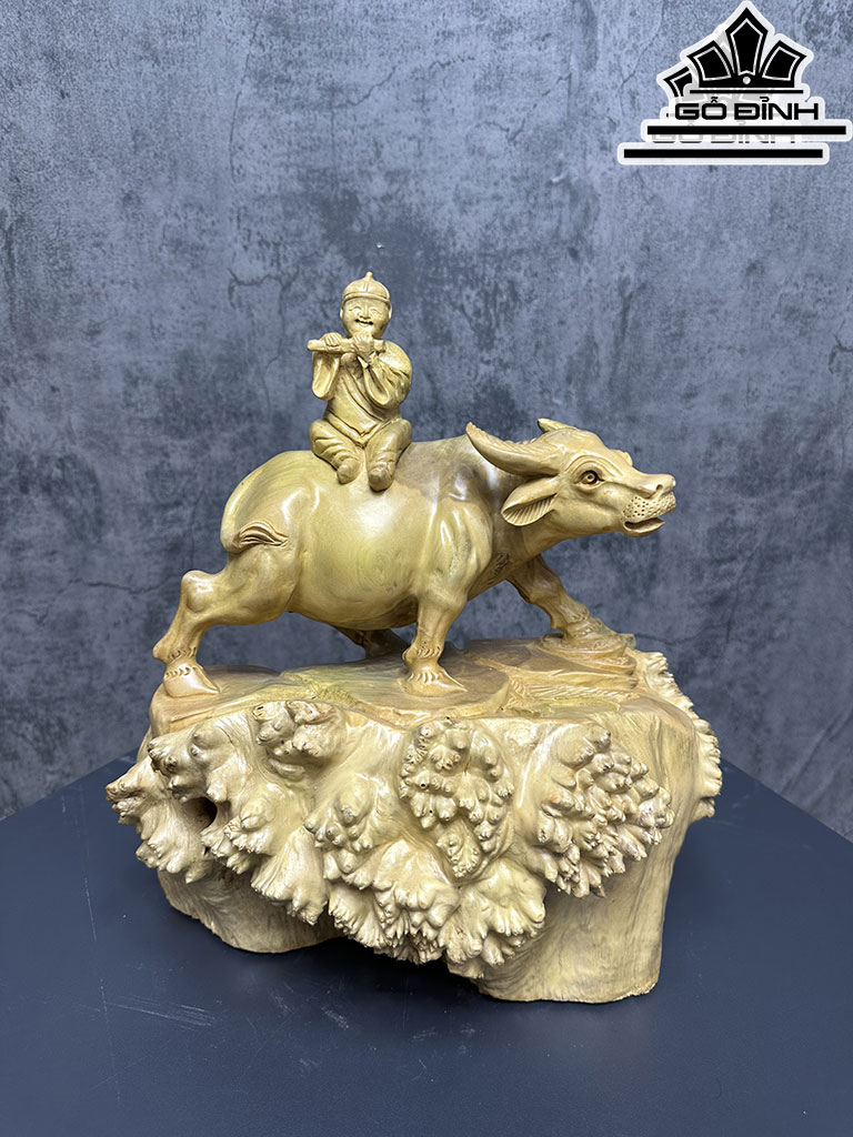 Tiểu Đồng Chăn Trâu Thổi Sáo Gỗ Nu Dổi Cao 38 Ngang 33 Sâu 22 (cm)