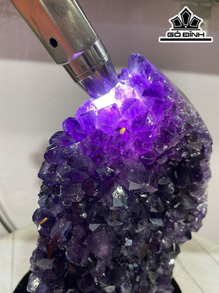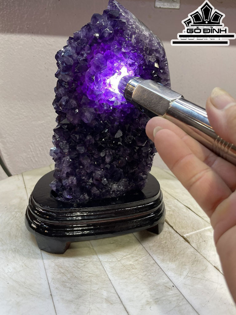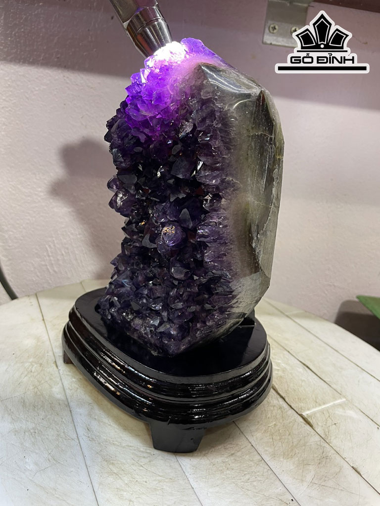 Tinh Thể Đá Thạch Anh Tím Tự Nhiên Cao 26 Sâu 15 (cm) 3.4 kg Luôn đế