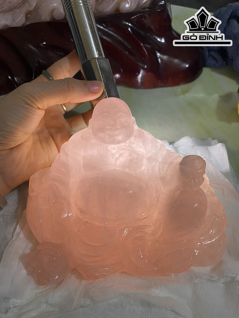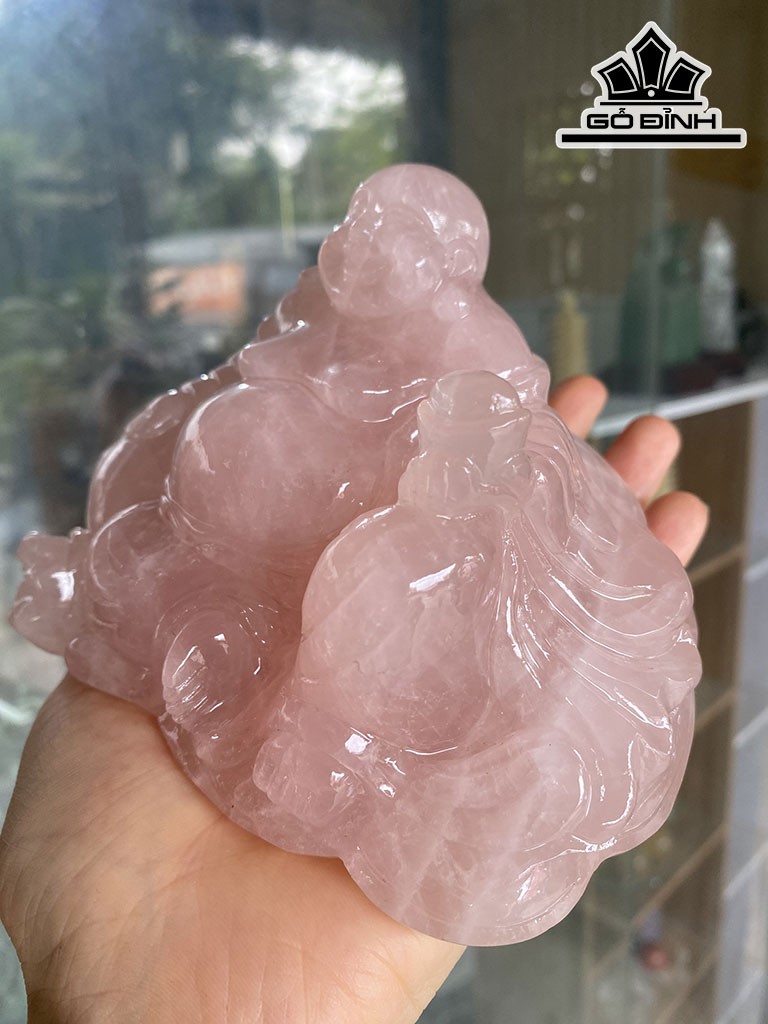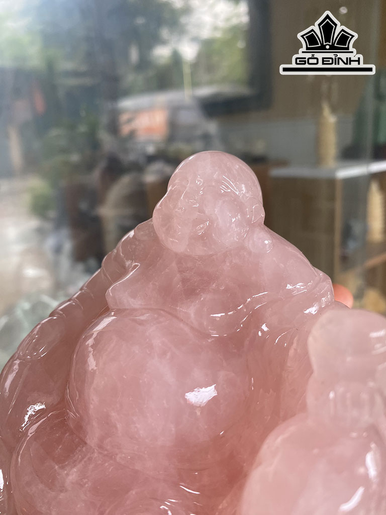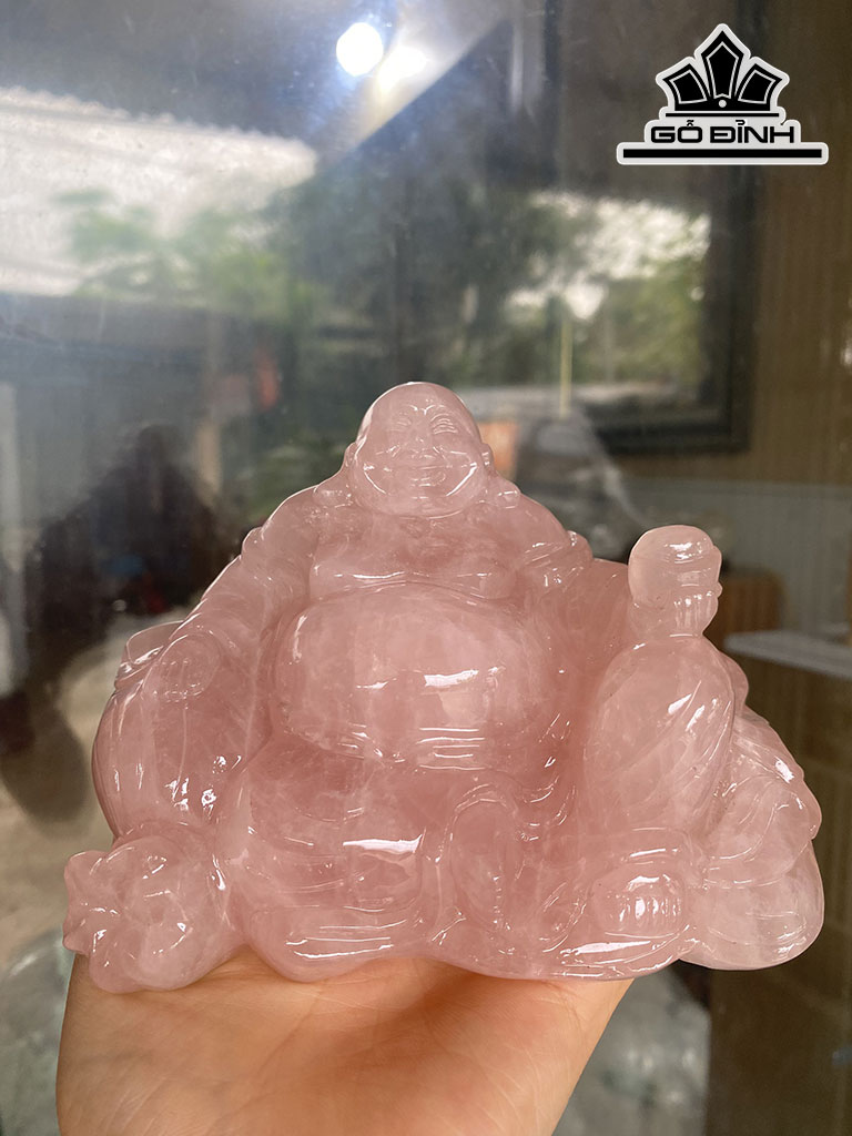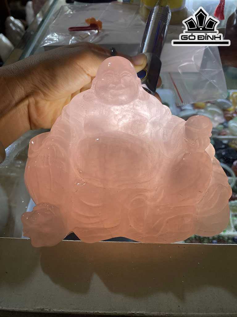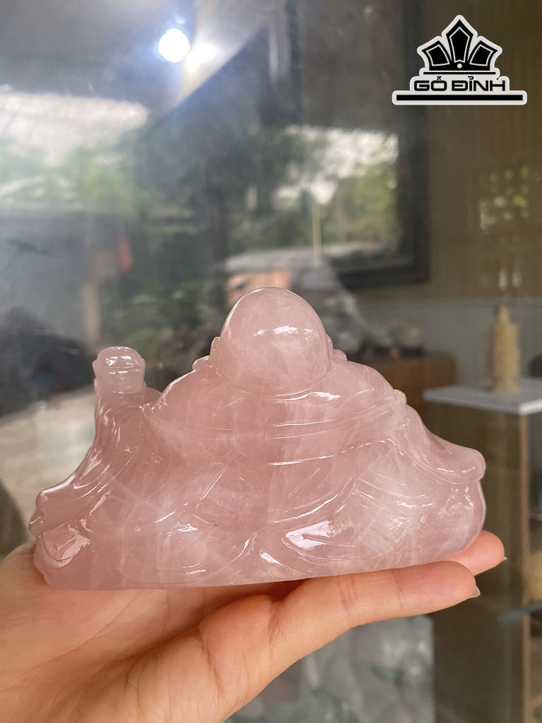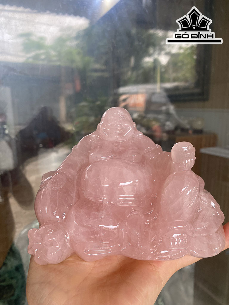 Tôn Phật Di Lặc Đá Thạch Anh Hồng Brazil Cao 13,9 Ngang 10,5 Sâu 8 (cm)