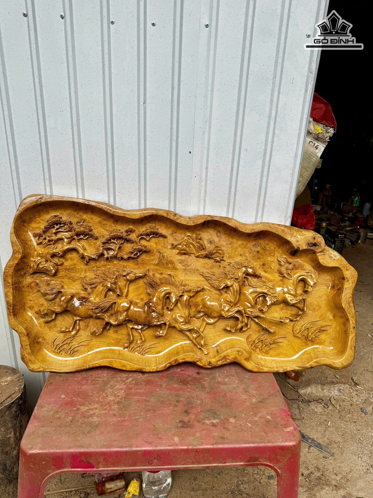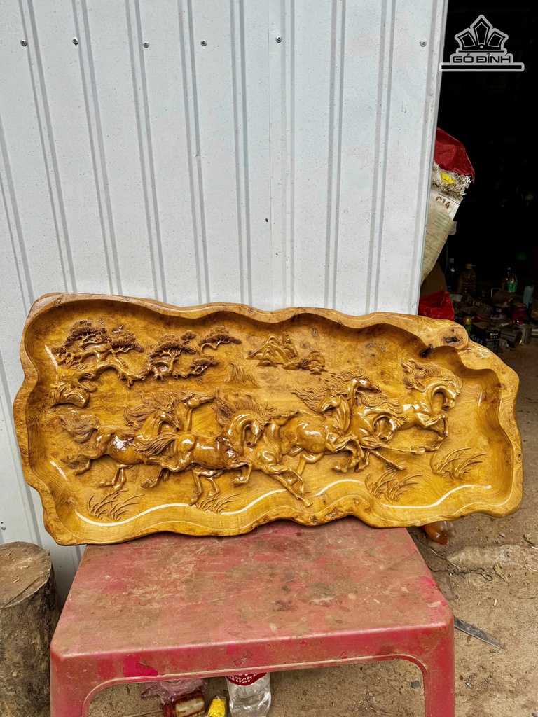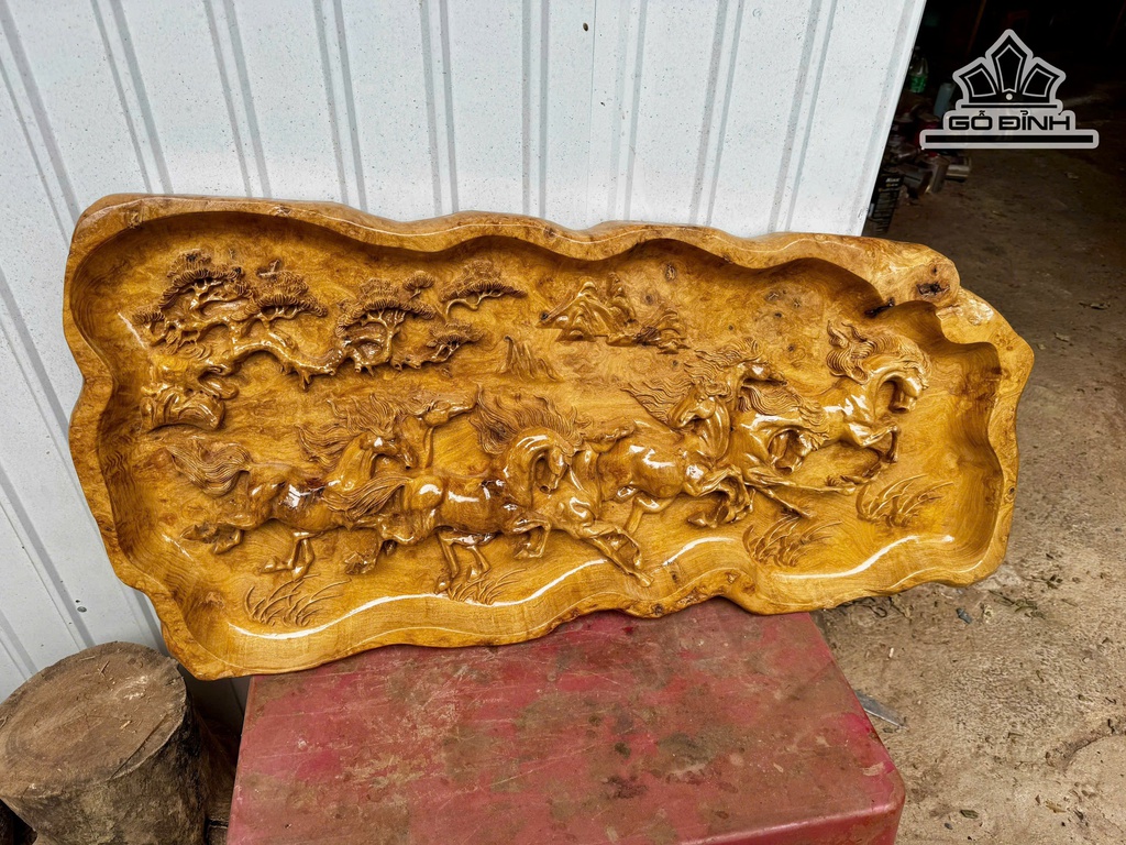 Tranh Bát Mã Gỗ Nu Nghiến Cao 46 Ngang 100 Sâu 6 (cm)