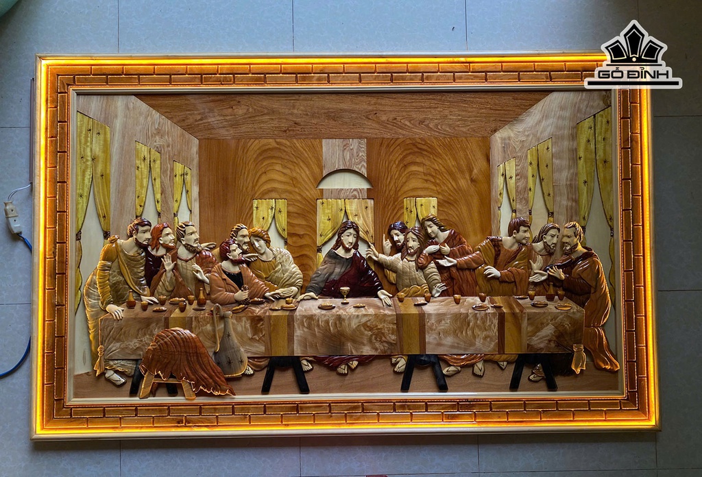 Tranh Bữa Tiệc Ly Gỗ Ghép 3D Cao 107 Rộng 174 - Có Đèn LED