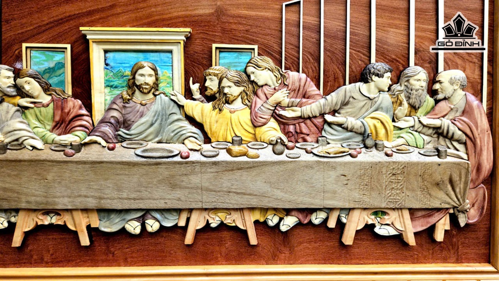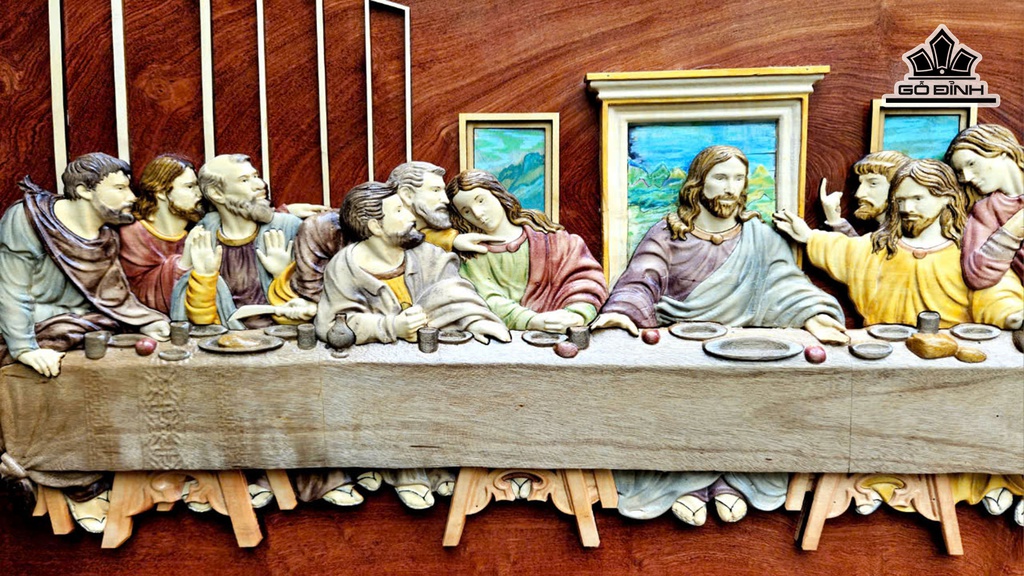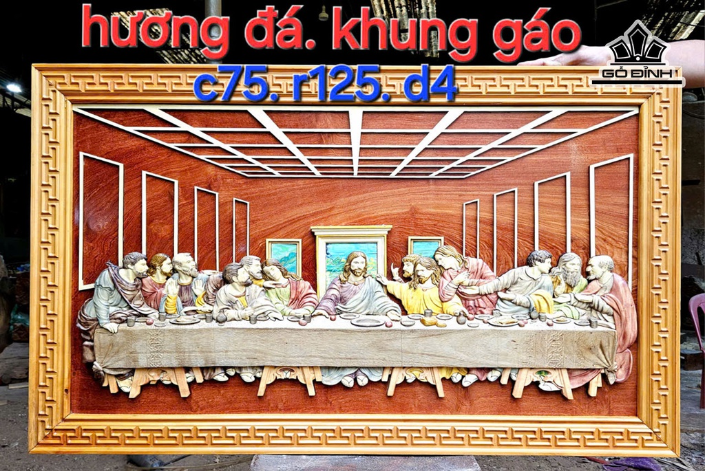 Tranh Bữa Tiệc Ly Gỗ Hương Đá Khung Gáo Cao 75 Rộng 125 Dày 4 (cm)