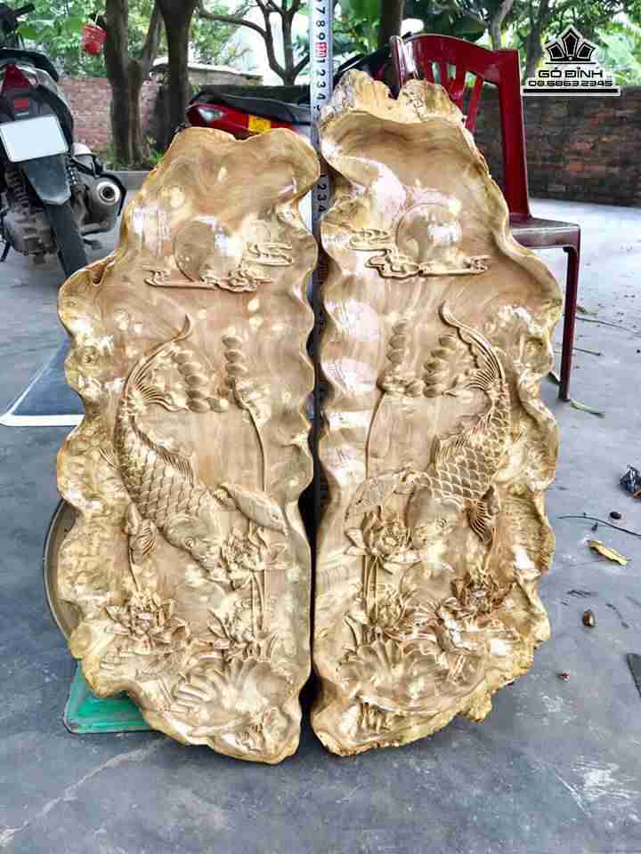 Tranh cá chép gỗ nu nghiến cao 68 rộng 25.5 dày 2.2 (cm)