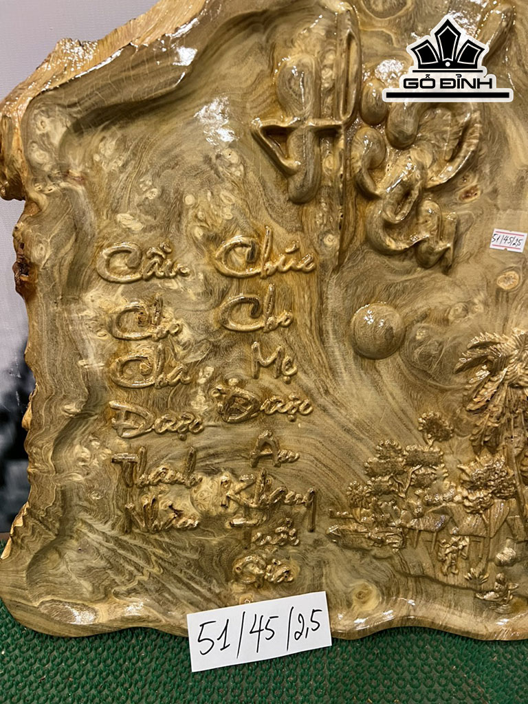 Tranh Chữ Hiếu Gỗ Nu Nghiến Cao 51 Ngang 45 Sâu 2,5 (cm)