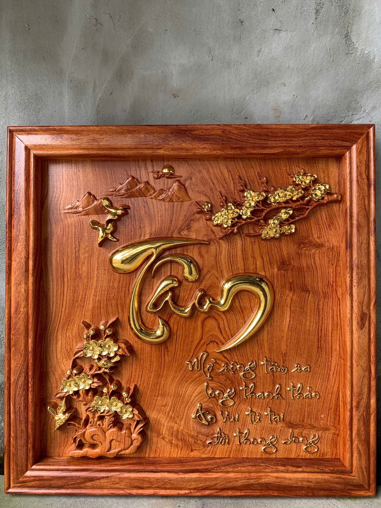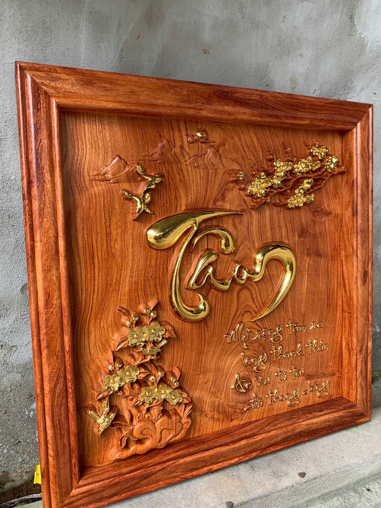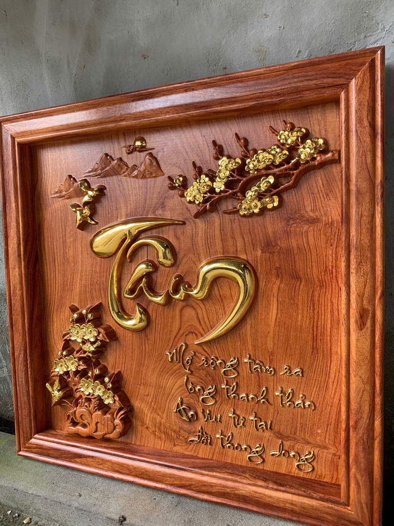 Tranh Chữ Tâm Gỗ Hương Đá Kích Thước 61x61x4 (cm)