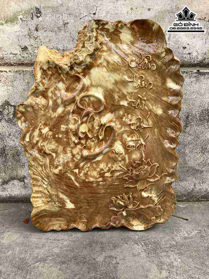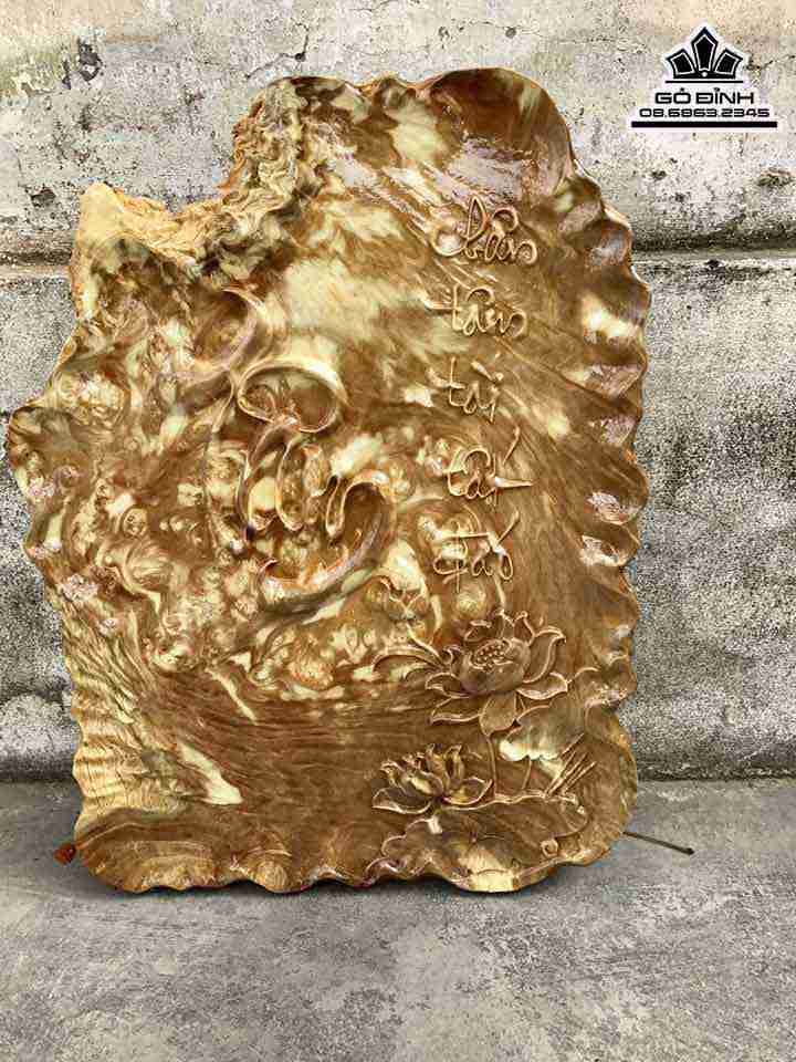 Tranh Chữ Tâm Gỗ Nu Nghiến Cao 59 Rộng 45 Dày 2.5 (cm)