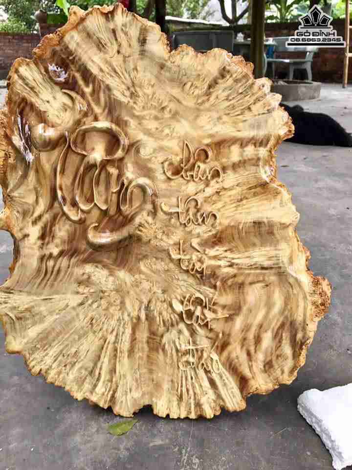 Tranh chữ tâm gỗ nu nghiến dài 50 rộng 42 dày 2.5 (cm)