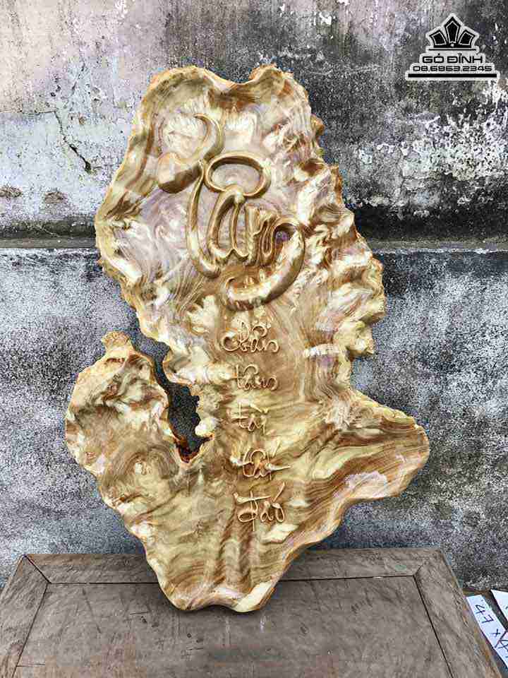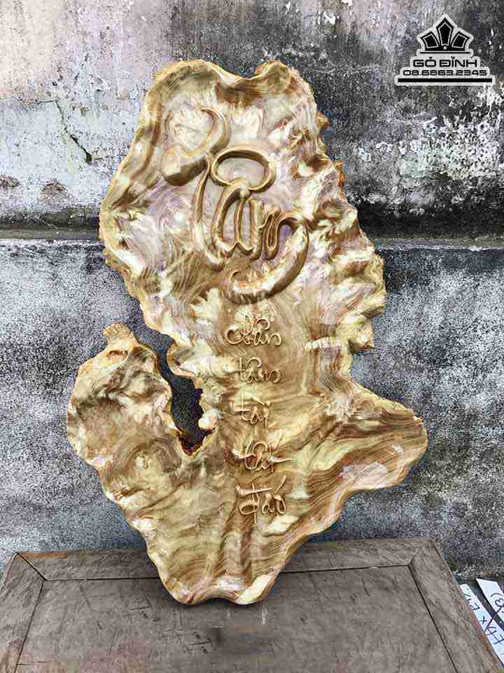 Tranh Chữ Tâm Gỗ Nu Nghiến Cao 54 Rộng 36 Dày 2.5 (cm)