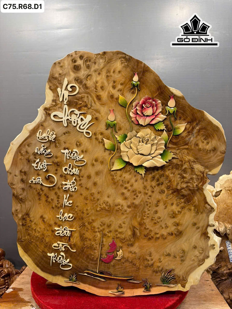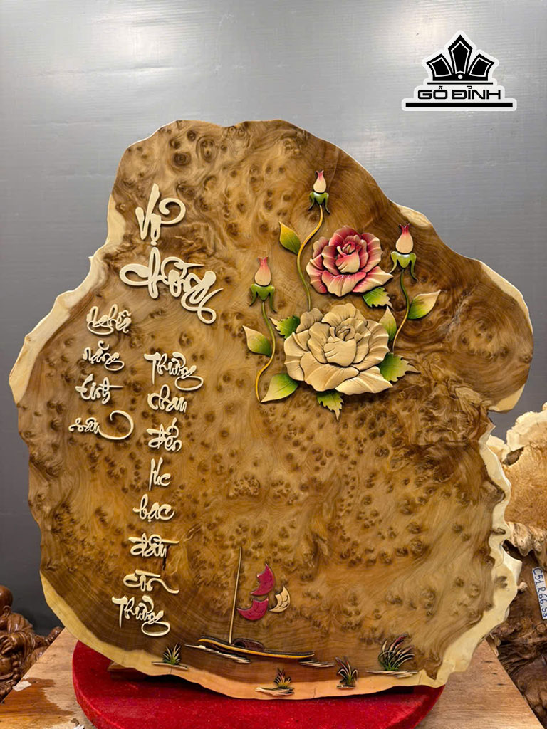 Tranh Chữ Vợ Chồng Gỗ Nu Ngọc Am Cao 75 Ngang 68 Sâu 1 (cm)