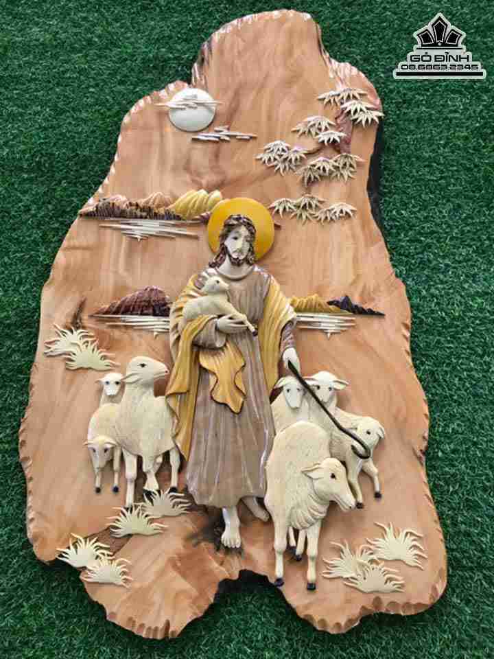 Tranh Chúa Chăn Chiên Gỗ Trai Rộng 58 Cao 95 Dày 2 (cm)