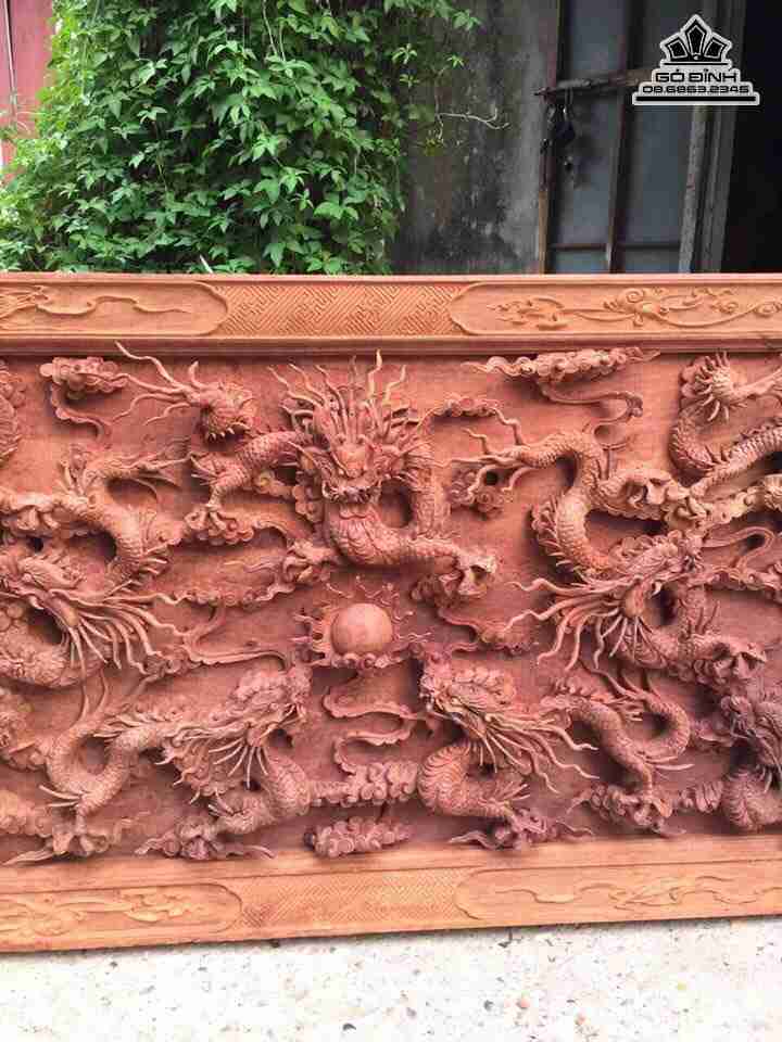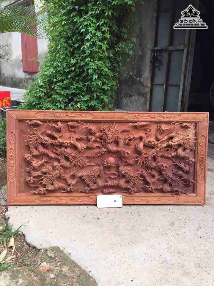 Tranh cửu long đoạt ngọc gỗ hương dài 107 rộng 50 dày 6 (cm)