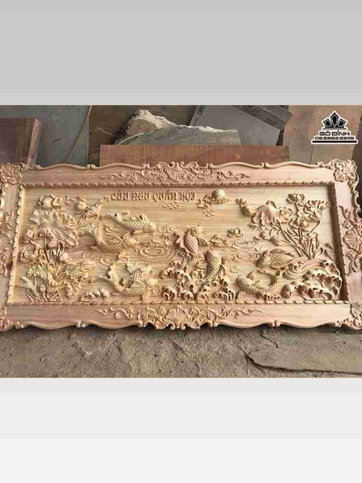 Tranh cửu ngư quần hội gỗ pơ mu cao 62 rộng 1m37 dày 4,5 (cm)