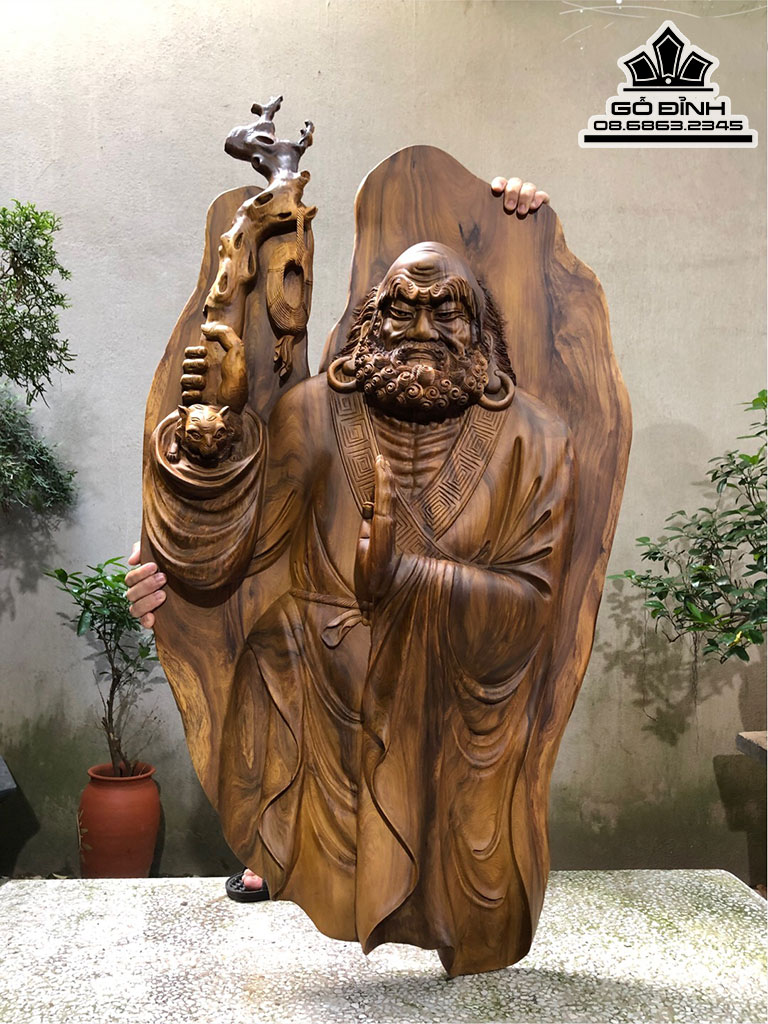 Tranh Đạt Ma Treo Tương Gỗ Bách Xanh Cao 120 Ngang 65 Sâu 20 (cm)