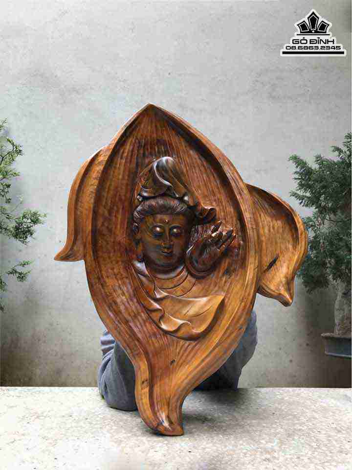 Tranh Diện Phật Treo Tường Gỗ Sụn Bách Xanh Cao 56 Rộng 46 Dày 10 (cm)