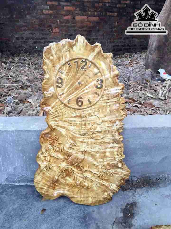 Tranh đồng hồ chữ lộc gỗ nu nghiến 57x33x2.7