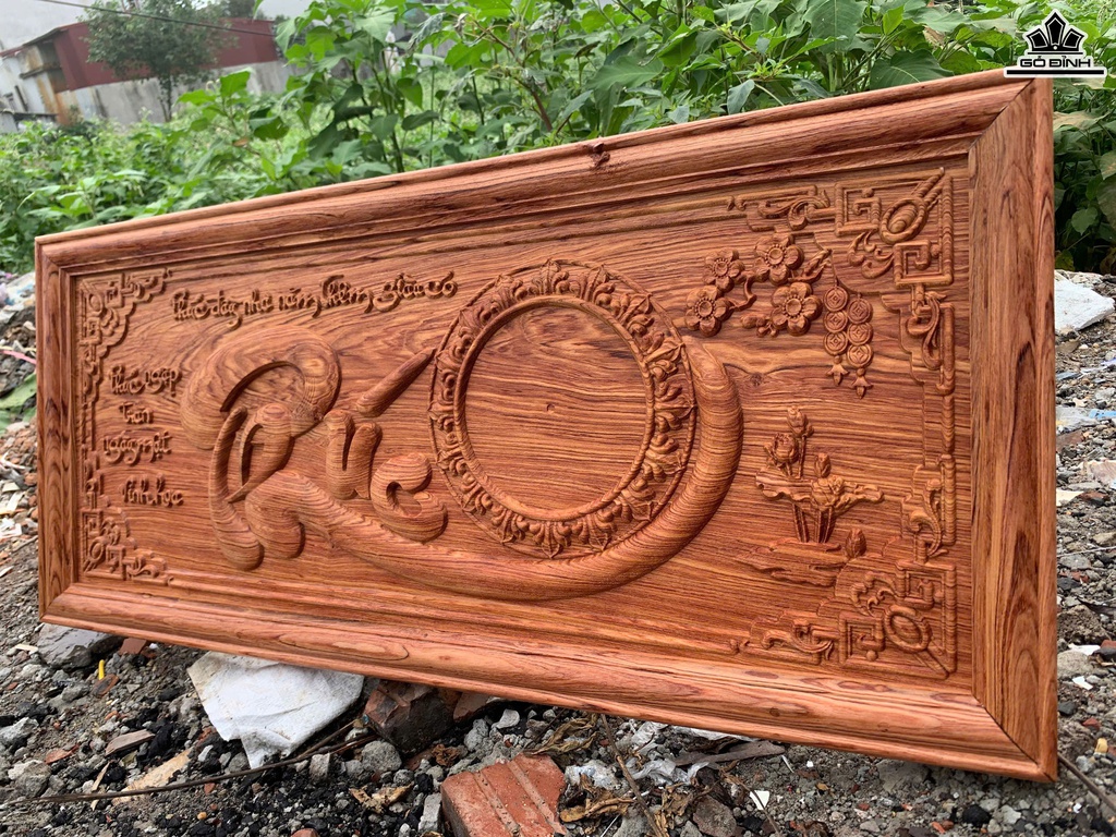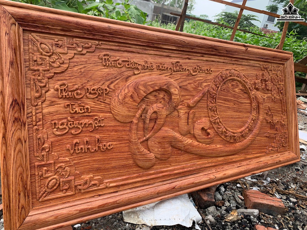 Tranh Đồng Hồ Chữ Phúc Gỗ Hương Đá Kích Thước 48x108x3,5 (cm)