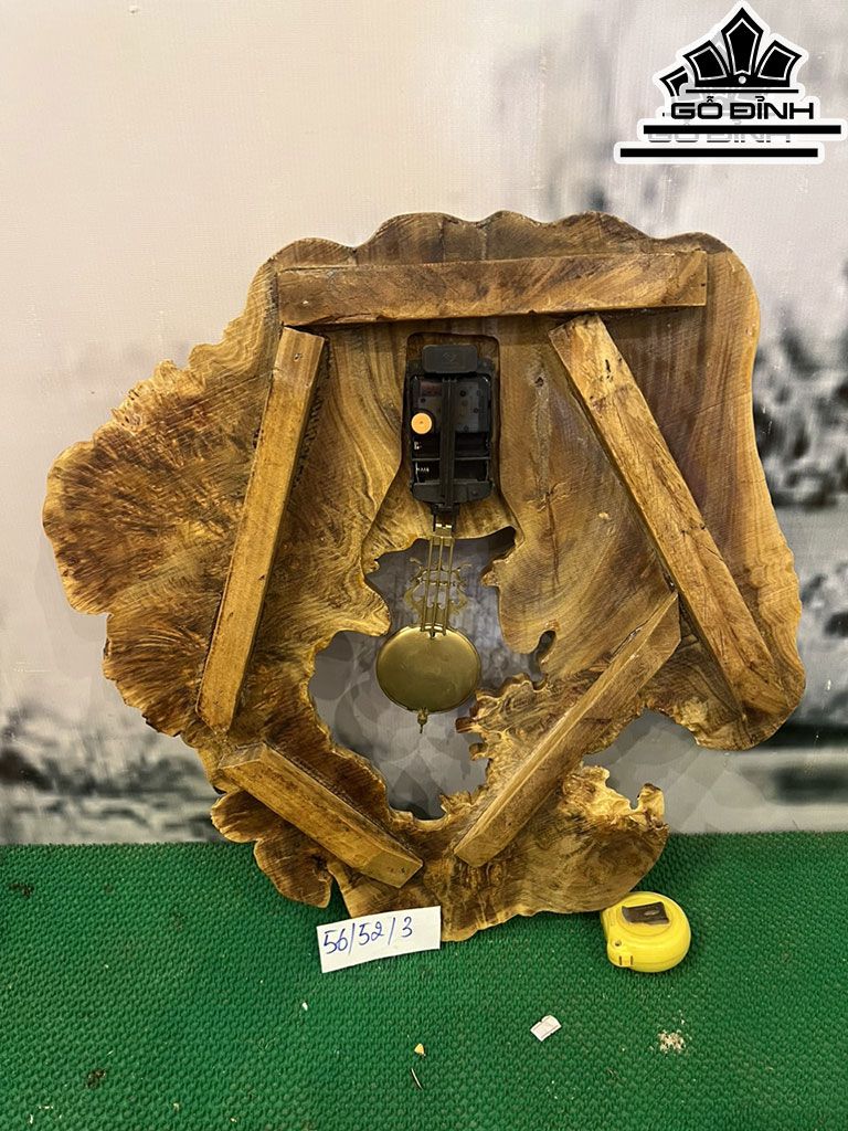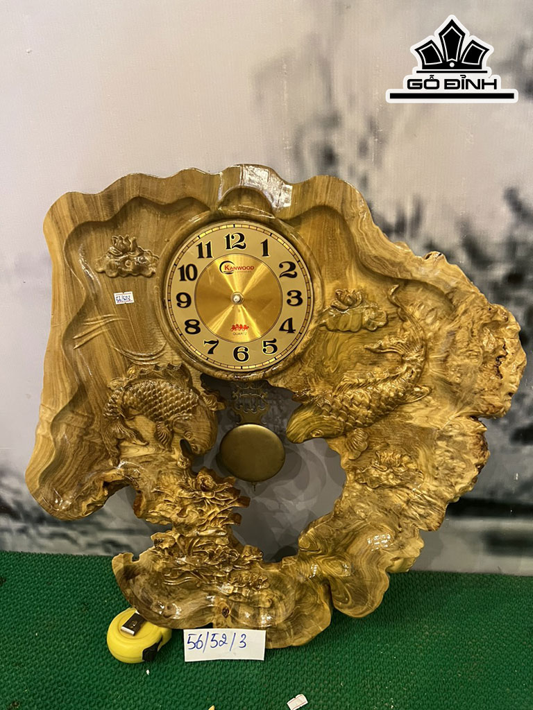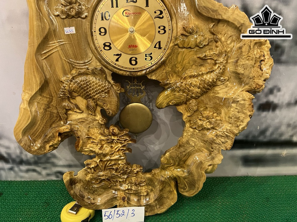 Tranh Đồng Hồ Song Ngư Vờn Ngọc Gỗ Nu Nghiến Cao 56 Ngang 52 Sâu 3 (cm)