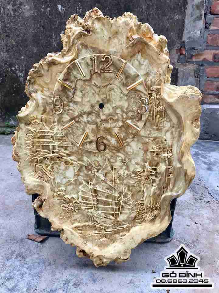 Tranh đồng hồ thuận buồm xuôi gió gỗ nu nghiến 55x39x2.2