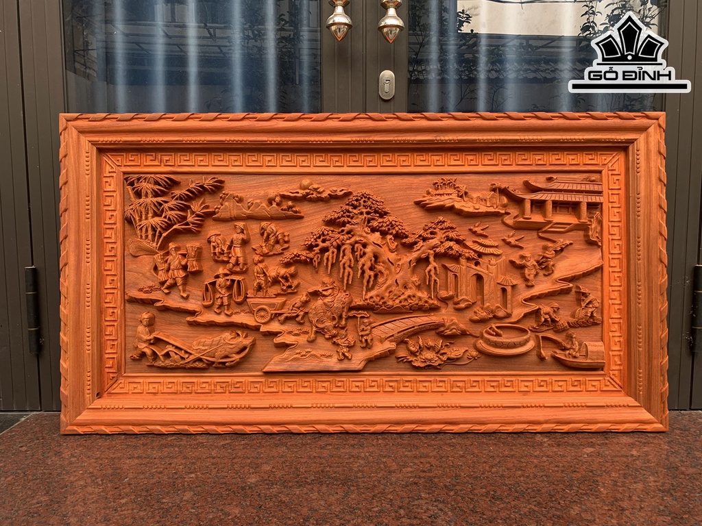 Tranh Đồng Quê Gỗ Hương Kích Thước 67x127x5 (cm)