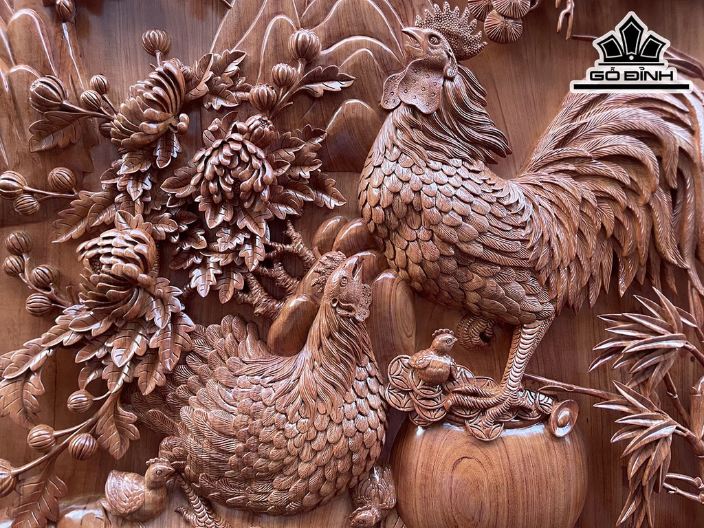 Tranh Gia Đình Gà Gỗ Hương Đá Cao 167 Ngang 117 Sâu 8 Ván Rộng 97 (cm)