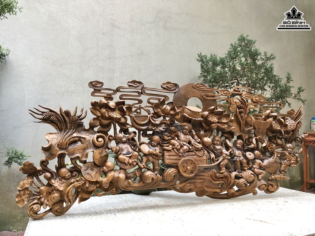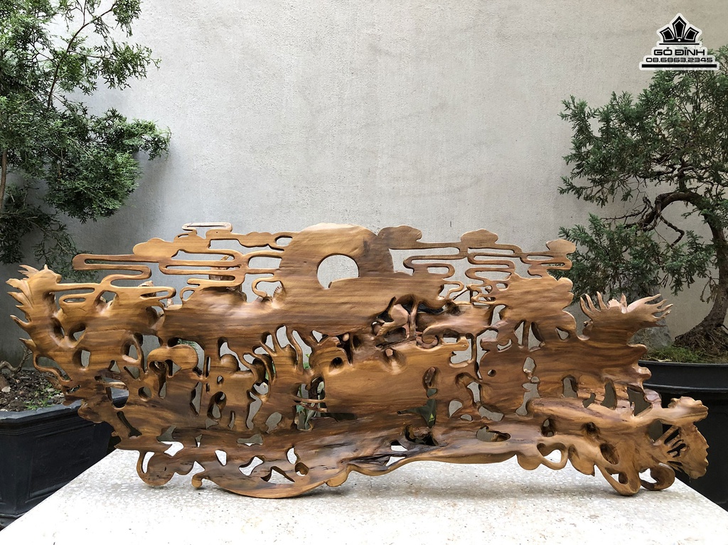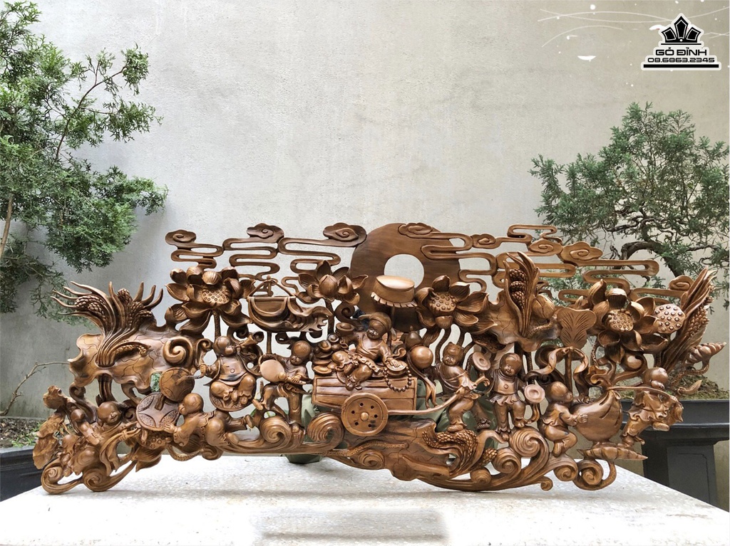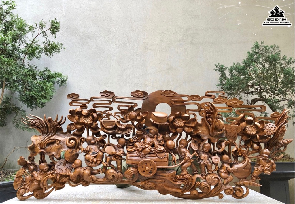 Tranh Gỗ Cửu Phúc Gỗ Bách Xanh Cao 50 Ngang 128 Sâu 8 (cm)