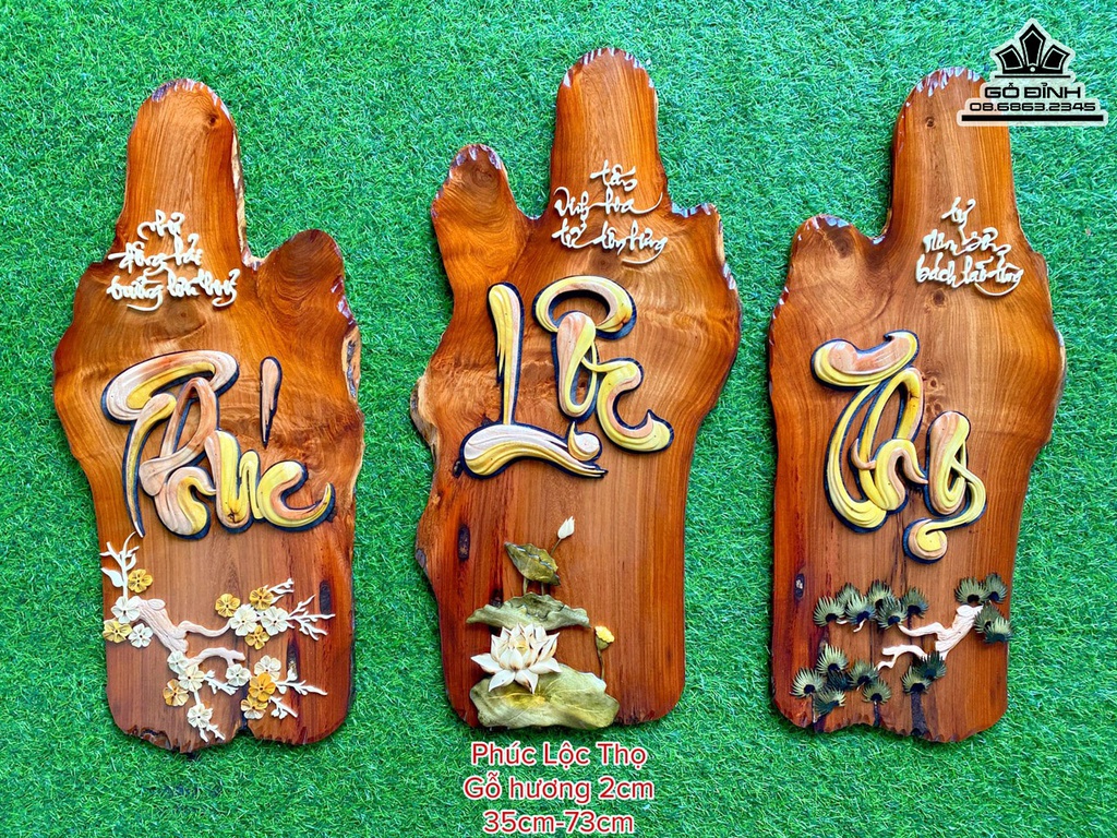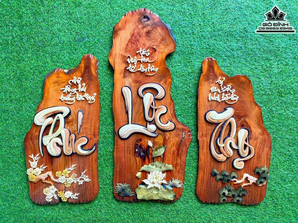 Tranh Phúc Lộc Thọ Gỗ Hương