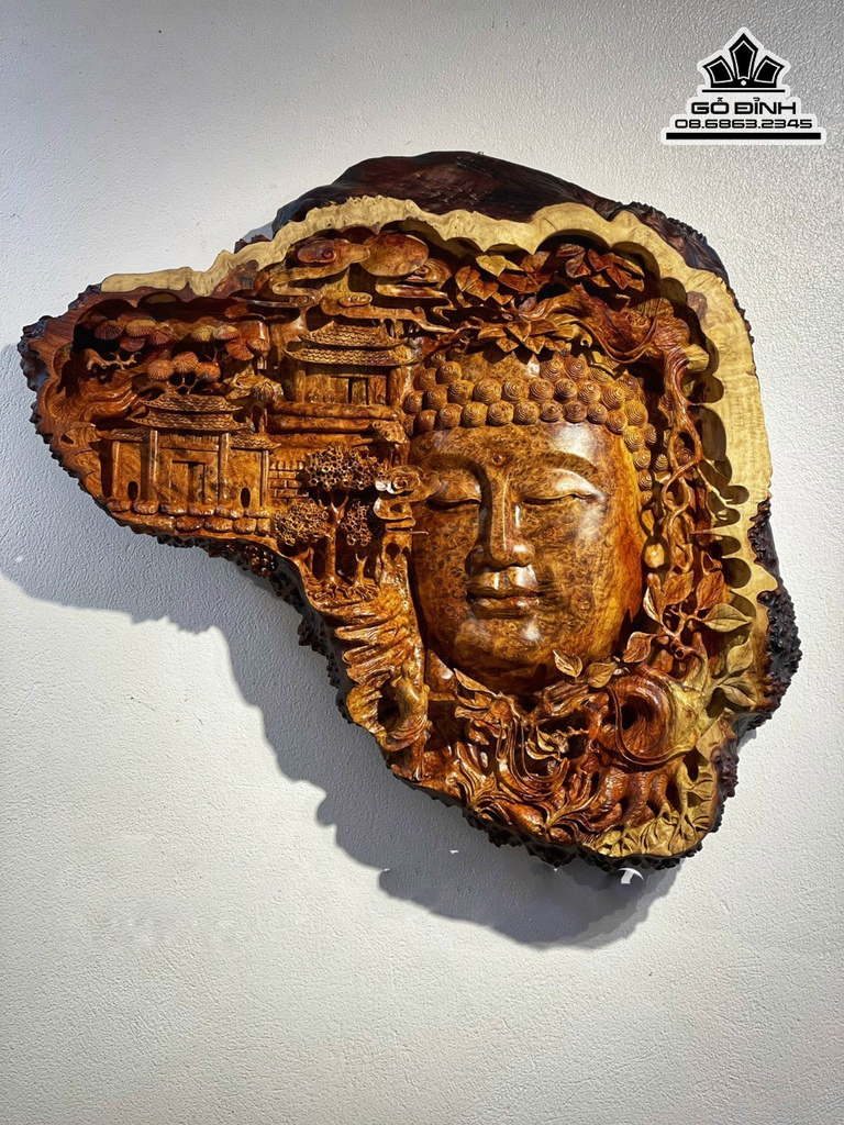 Tranh Gỗ Tranh Diện Phật Gỗ Hương Cao 63 Ngang 60 Dày 9 (cm)
