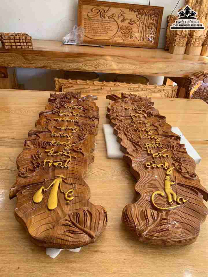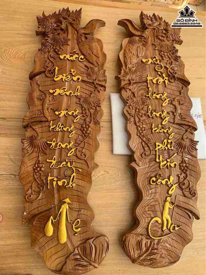 Tranh Lá Chuối Câu Đối Cha Mẹ Gỗ Du Sam Rộng 40 Dài 120 Dày 4 (cm)