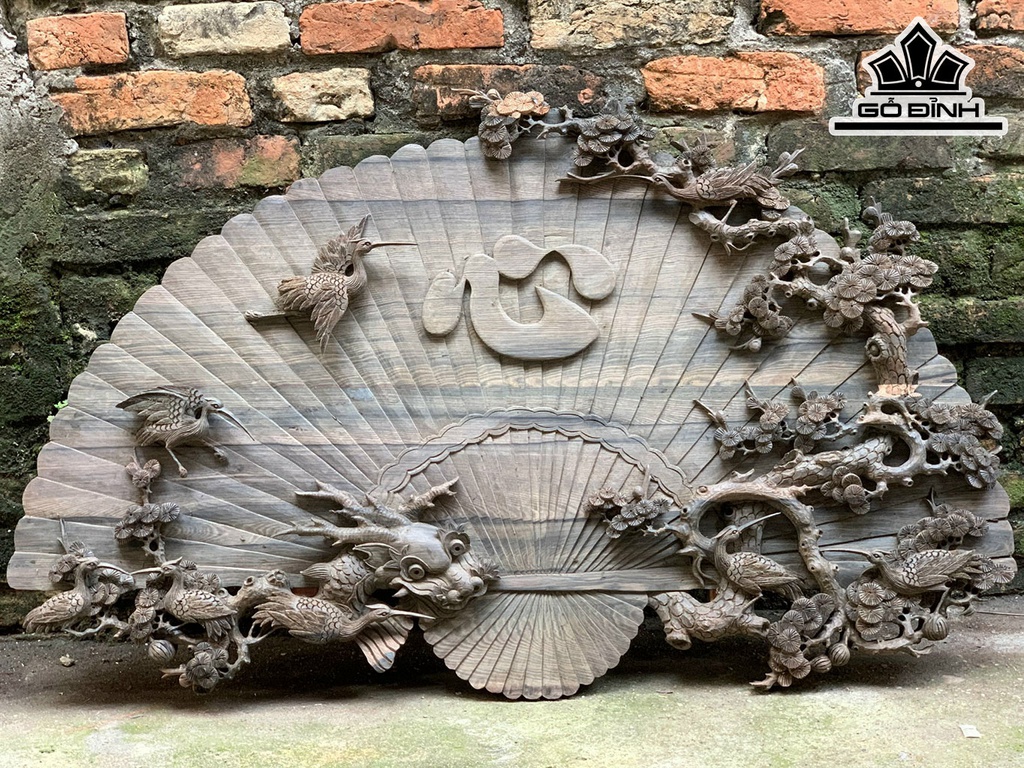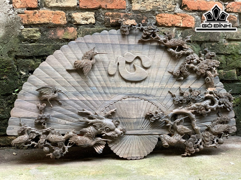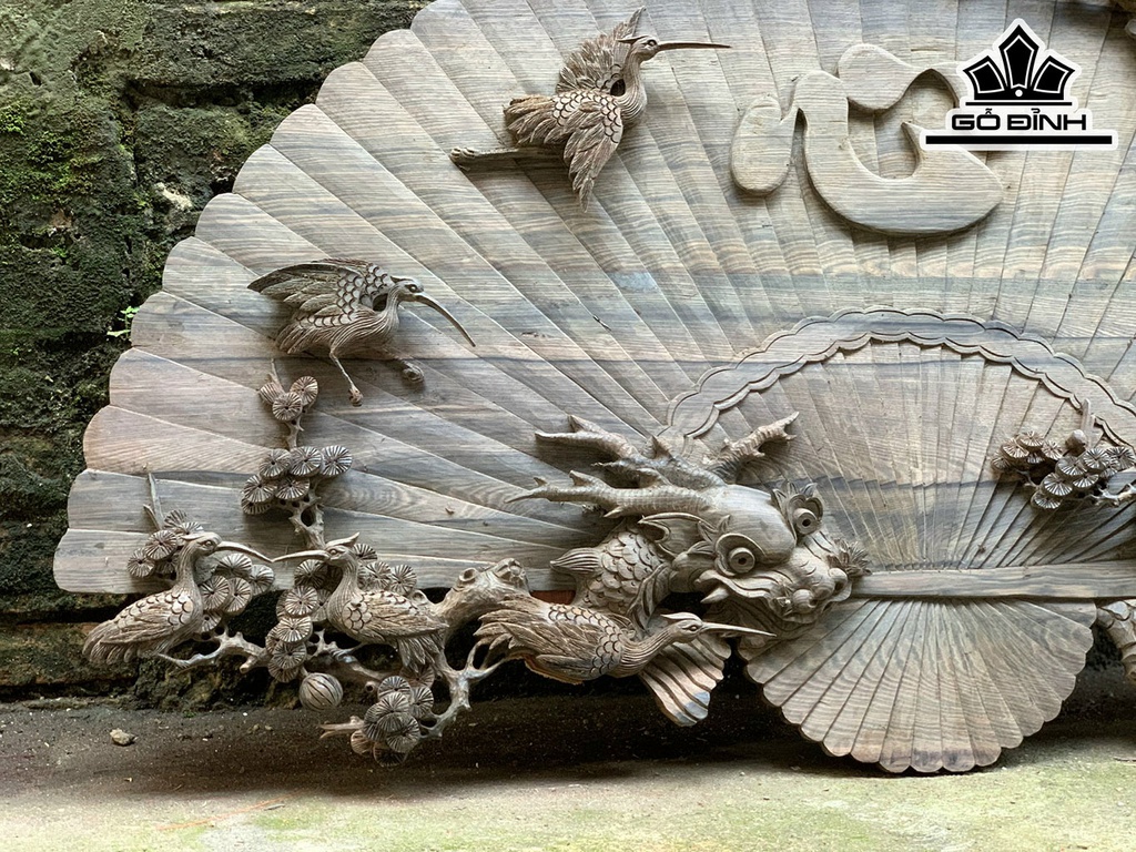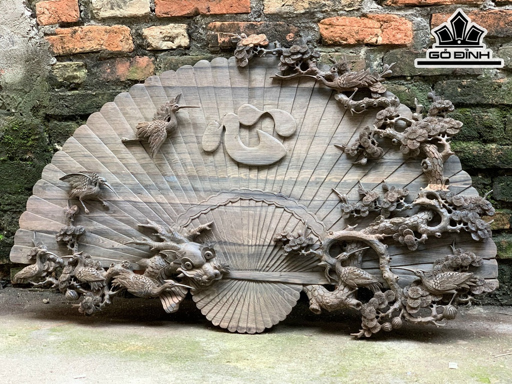 Tranh Lục Hạc Quần Tùng Gỗ Mun Hoa Dài 117 Cao 70 Sâu 4,5 (cm)