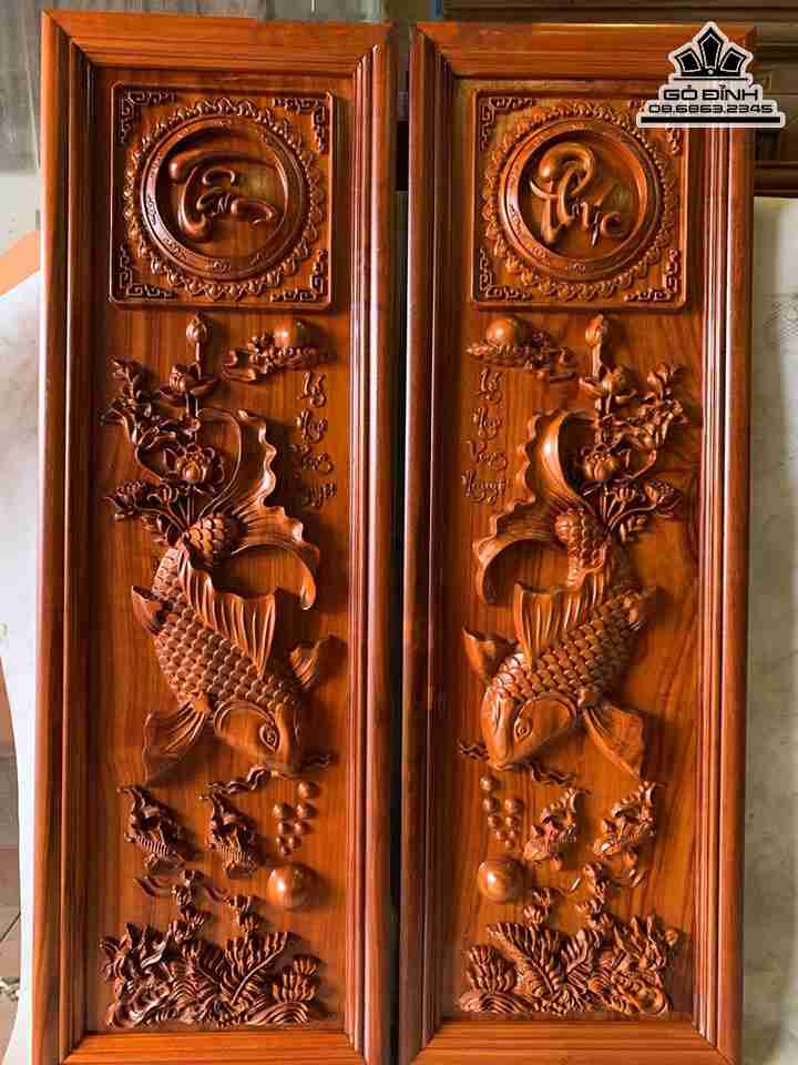 Tranh Lý Ngư Vọng Nguyệt Gỗ Hương Cao 117 Rộng 37 Dày 4 (cm)